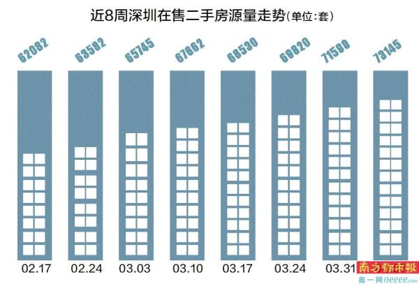 春节后二手房挂牌量“高歌猛进”,不断攀登“新高峰”。据深圳市房地产中介协会透露,当前全市有效二手房源在售量达73145套,较前一周增加1555套,创历史新高。比元宵节后多了超1.1万套,在成交逐月增加的情况下,挂牌量仍远大于市场消化的速度。