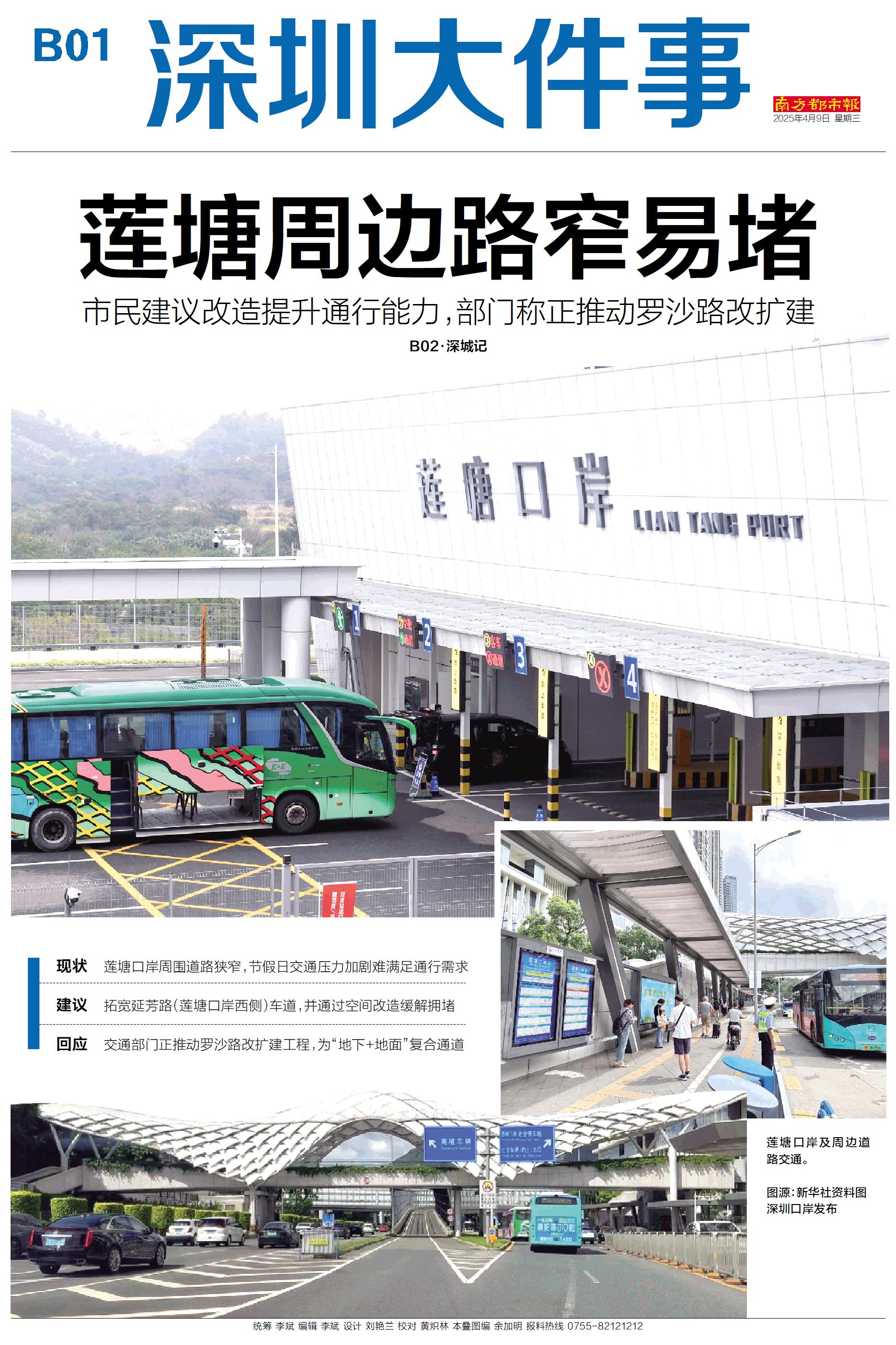 现状 莲塘口岸周围道路狭窄,节假日交通压力加剧难满足通行需求 建议 拓宽延芳路(莲塘口岸西侧)车道,并通过空间改造缓解拥堵 回应 交通部门正推动罗沙路改扩建工程,为“地下+地面”复合通