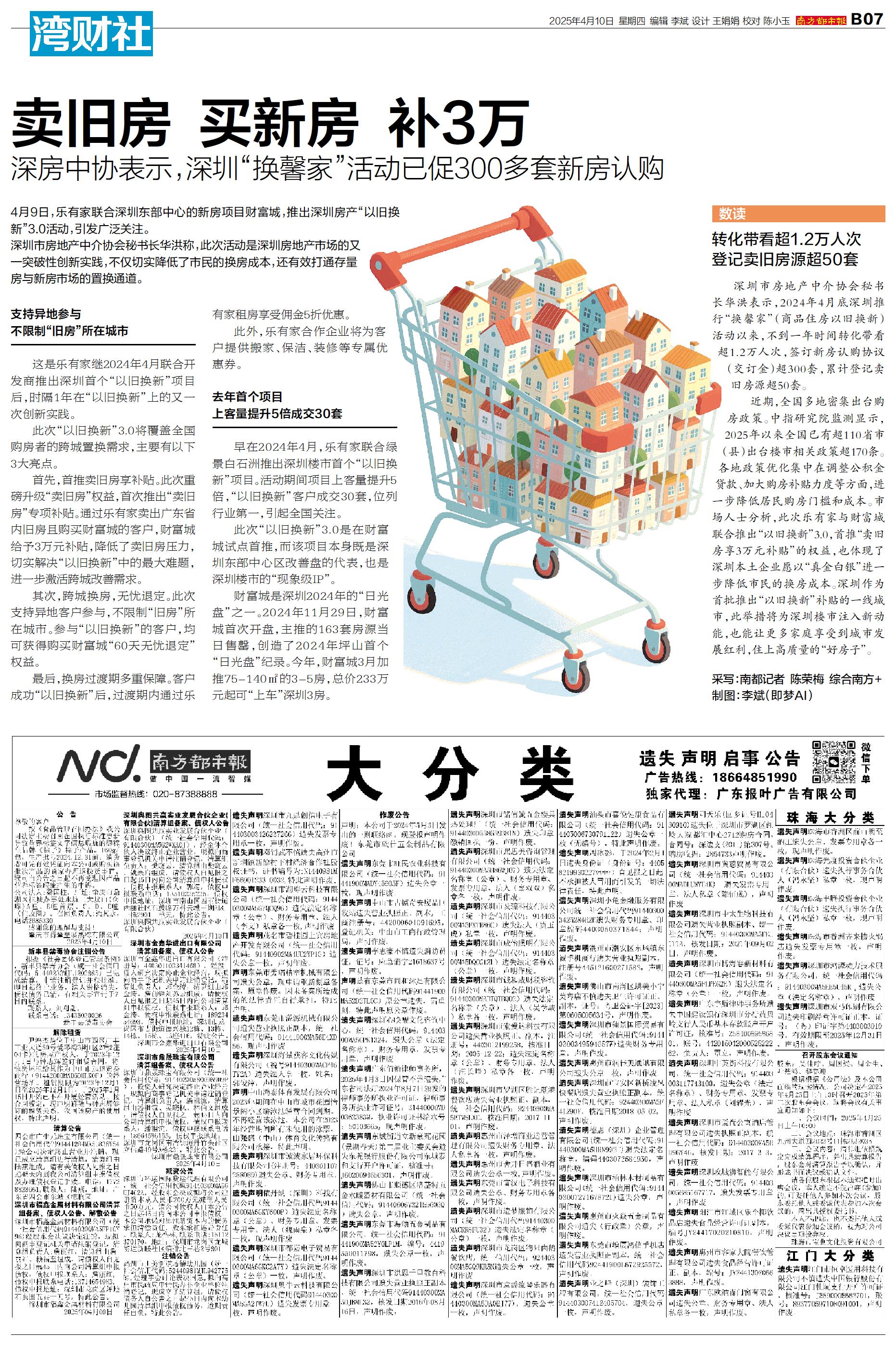 4月9日,乐有家联合深圳东部中心的新房项目财富城,推出深圳房产“以旧换新”3.0活动,引发广泛关注。 深圳市房地产中介协会秘书长华洪称,此次活动是深圳房地产市场的又一突破性创新实践,不仅切实降低