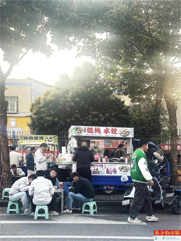 坪山区马峦街道江岭路,有摊贩把餐桌支到机动车道上。 “圳街评测”报道组摄