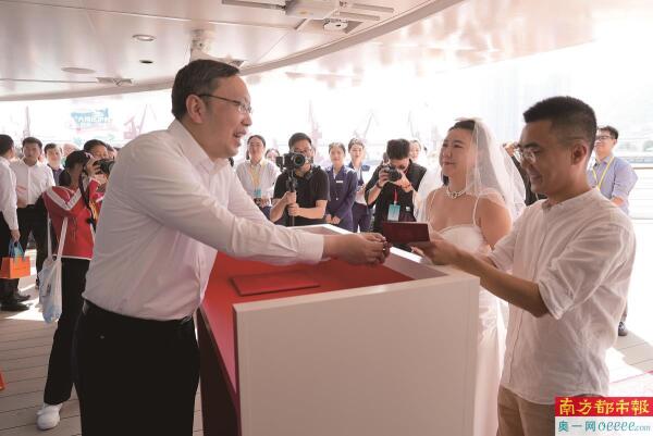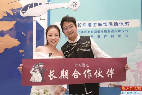 4月15日,由南山区民政局、文旅局联合招商邮轮共同打造的“湾区游轮户外海上婚姻证书颁发点”正式启用,当天即有8对新人参与了海上颁证体验。这也是深圳首个以海洋为背景的婚姻颁证场所。当天,深港双城海上文旅航线“深港游航线”正式贯通运营,大湾区海陆空产品同步发布。