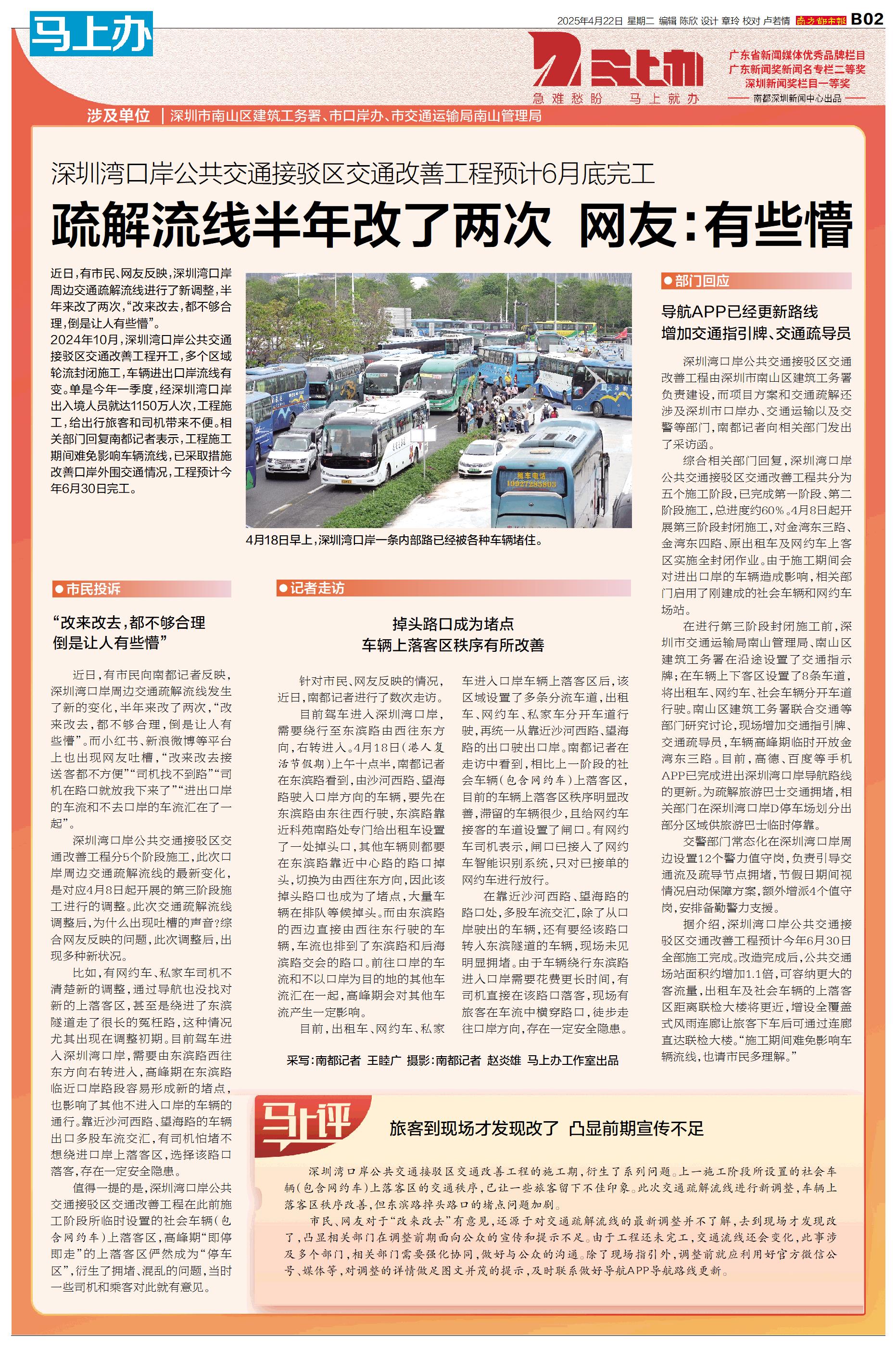 涉及单位 深圳市南山区建筑工务署、市口岸办、市交通运输局南山管理局 近日,有市民、网友反映,深圳湾口岸周边交通疏解流线进行了新调整,半年来改了两次,“改来改去,都不够合理,倒是让人有些懵”。