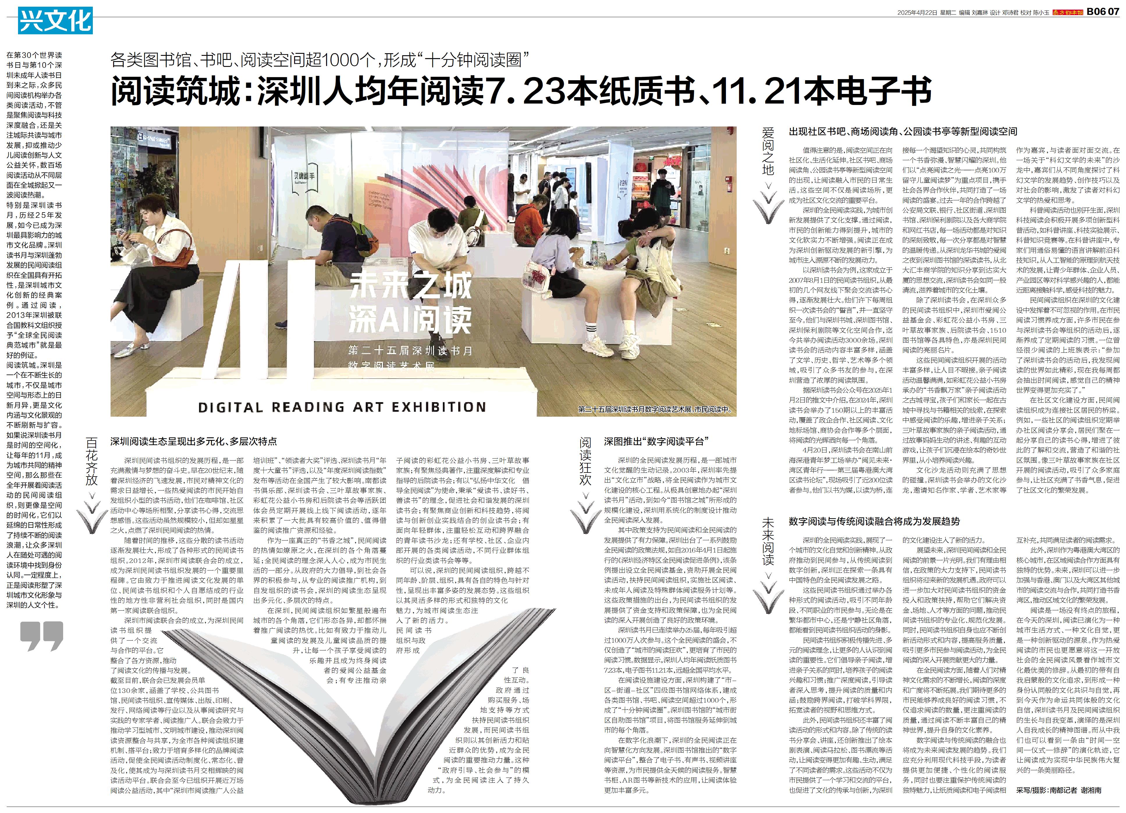 阅读筑城:深圳人均年阅读7.23本纸质书、11.21本电子书