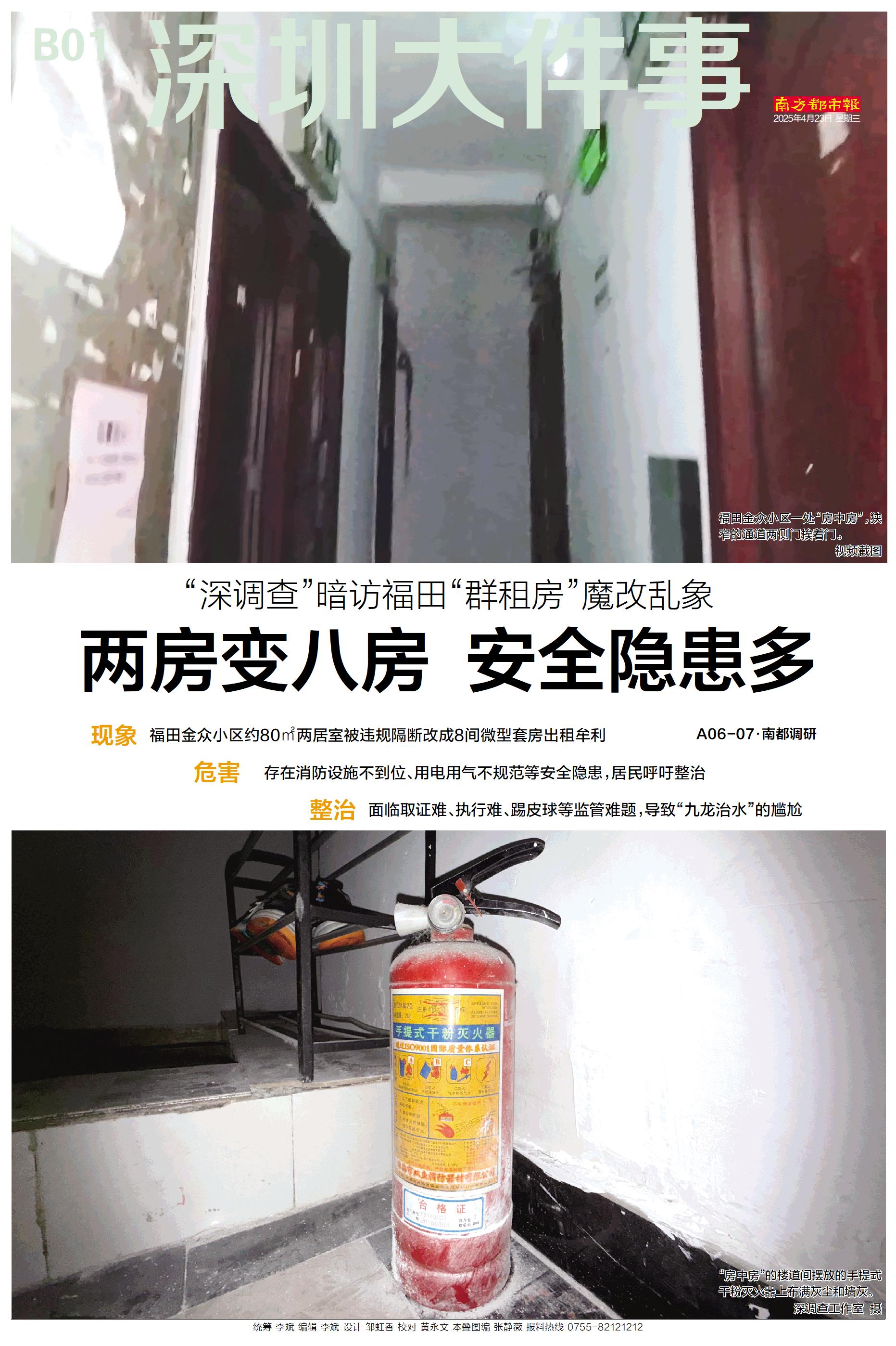 现象 福田金众小区约80㎡两居室被违规隔断改成8间微型套房出租牟利 危害 存在消防设施不到位、用电用气不规范等安全隐患,居民呼吁整治 整治 面临取证难、执行难、踢皮球等监管难题,导致“九龙治水