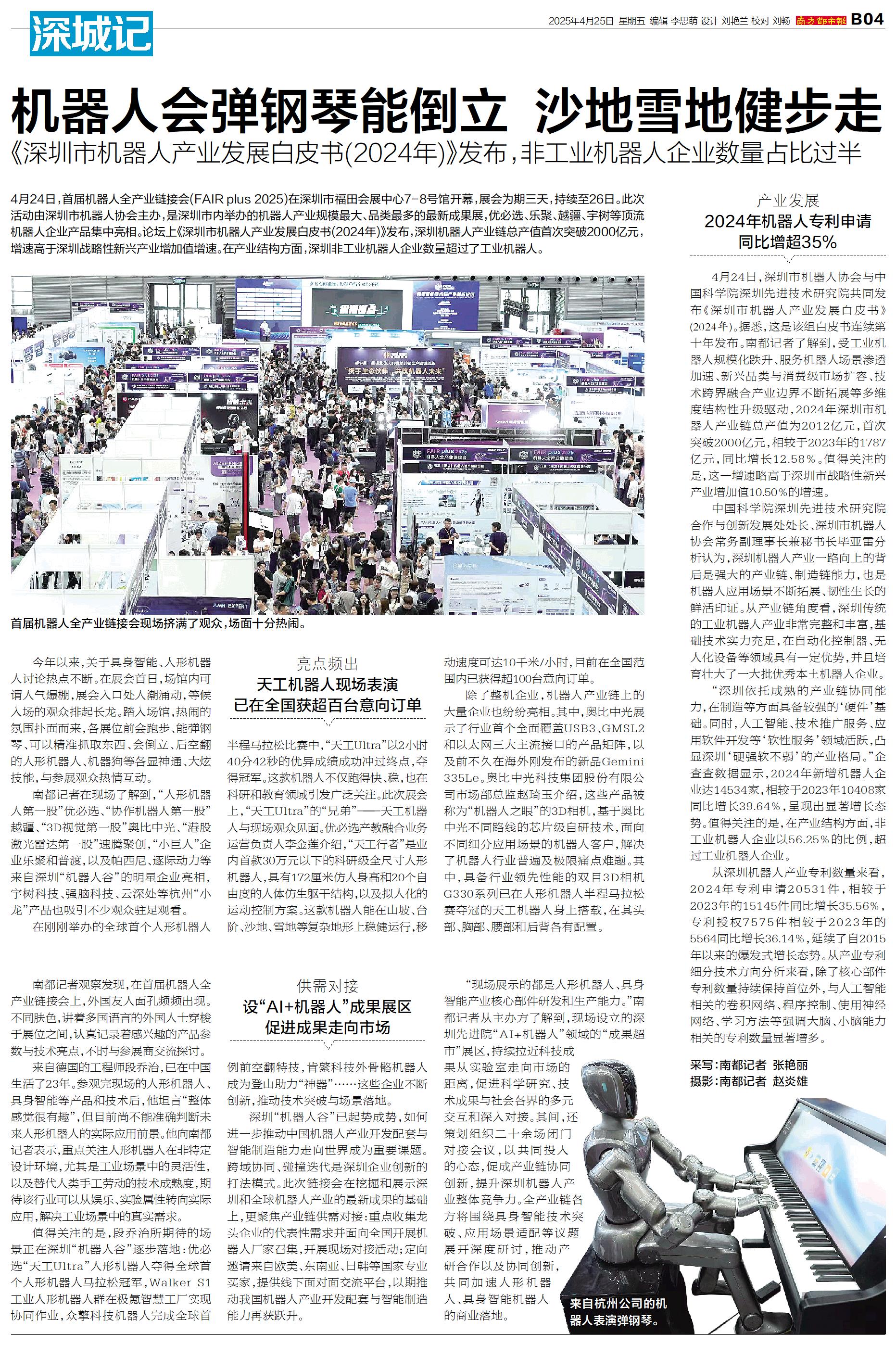 4月24日,首届机器人全产业链接会(FAIR plus 2025)在深圳市福田会展中心7-8号馆开幕,展会为期三天,持续至26日。此次活动由深圳市机器人协会主办,是深圳市内举办的机器人产业规模最大