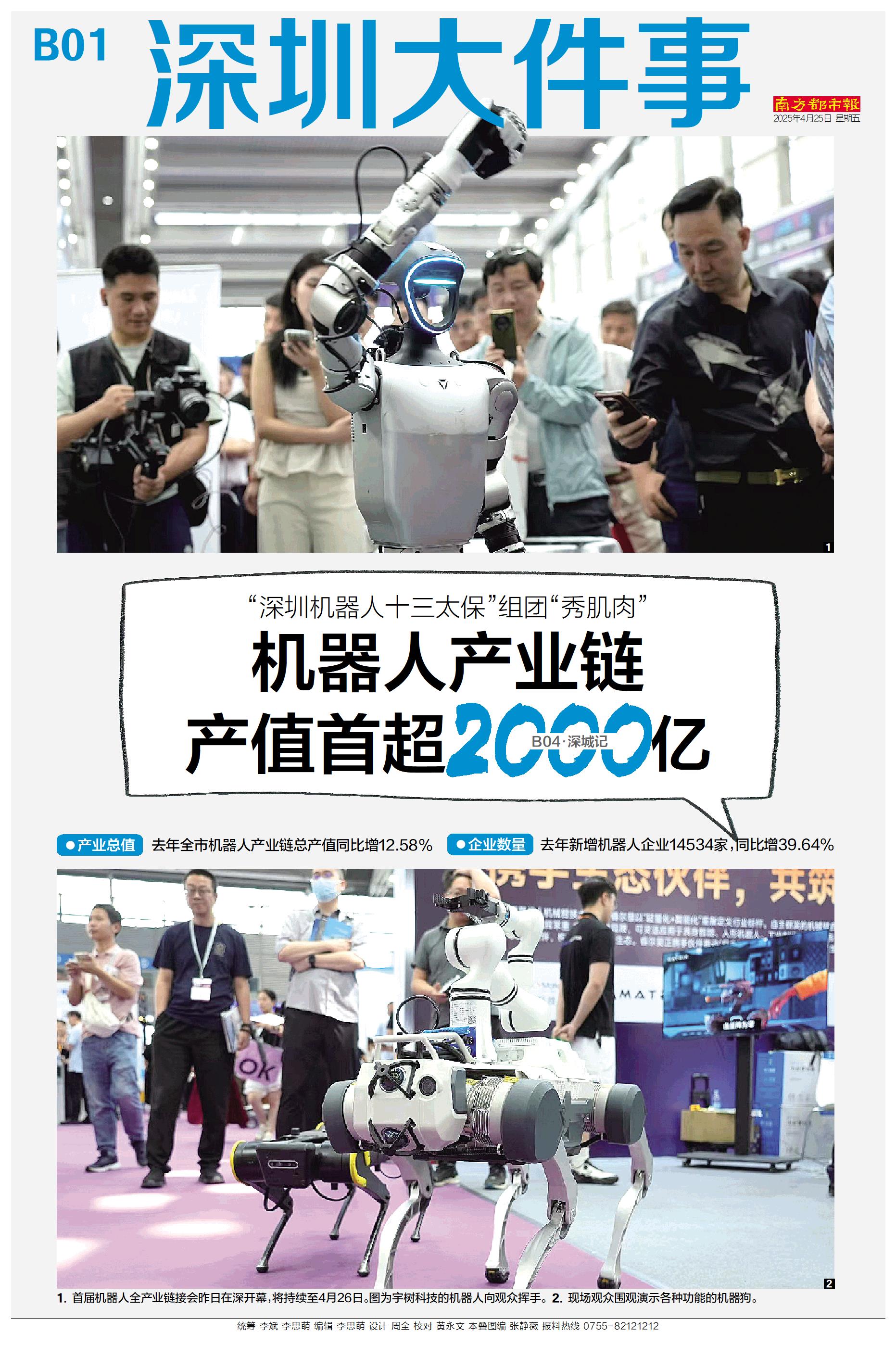 ●产业总值 去年全市机器人产业链总产值同比增12.58% ●企业数量 去年新增机器人企业14534家,同比增39.64% B04·深城记