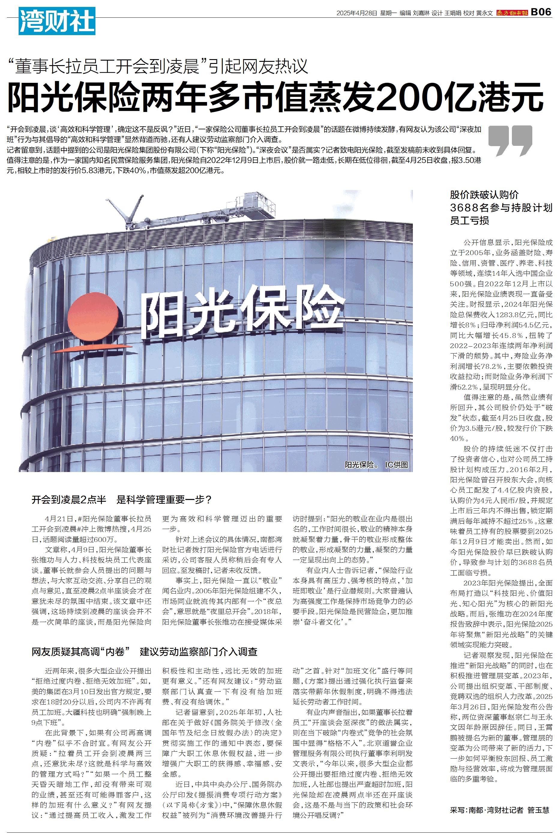 “开会到凌晨,谈‘高效和科学管理’,确定这不是反讽?”近日,“一家保险公司董事长拉员工开会到凌晨”的话题在微博持续发酵,有网友认为该公司“深夜加班”行为与其倡导的“高效和科学管理”显然背道而驰,还