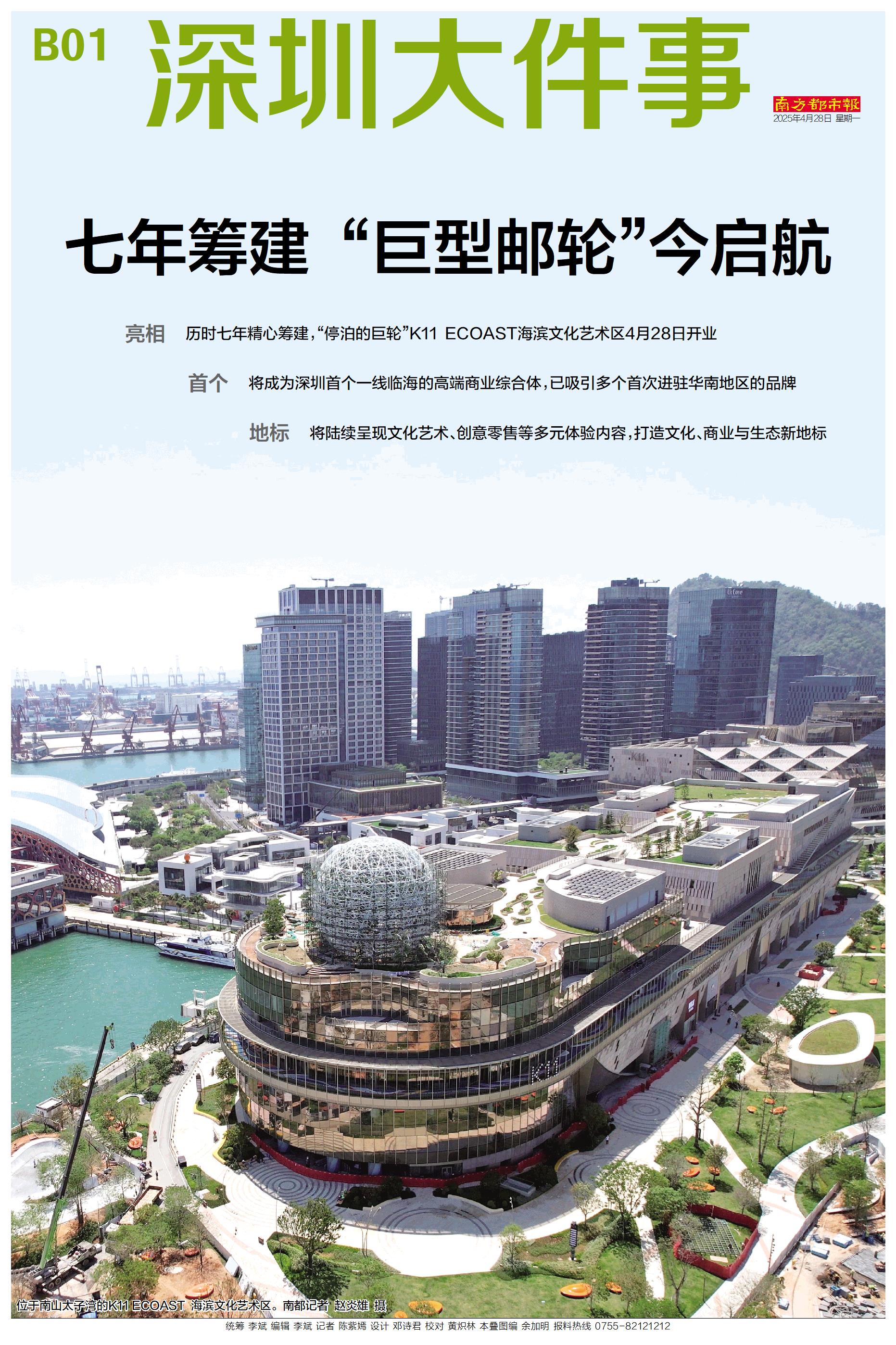 亮相 历时七年精心筹建,“停泊的巨轮”K11 ECOAST海滨文化艺术区4月28日开业 首个 将成为深圳首个一线临海的高端商业综合体,已吸引多个首次进驻华南地区的品牌 地标 将陆续呈现文化艺术