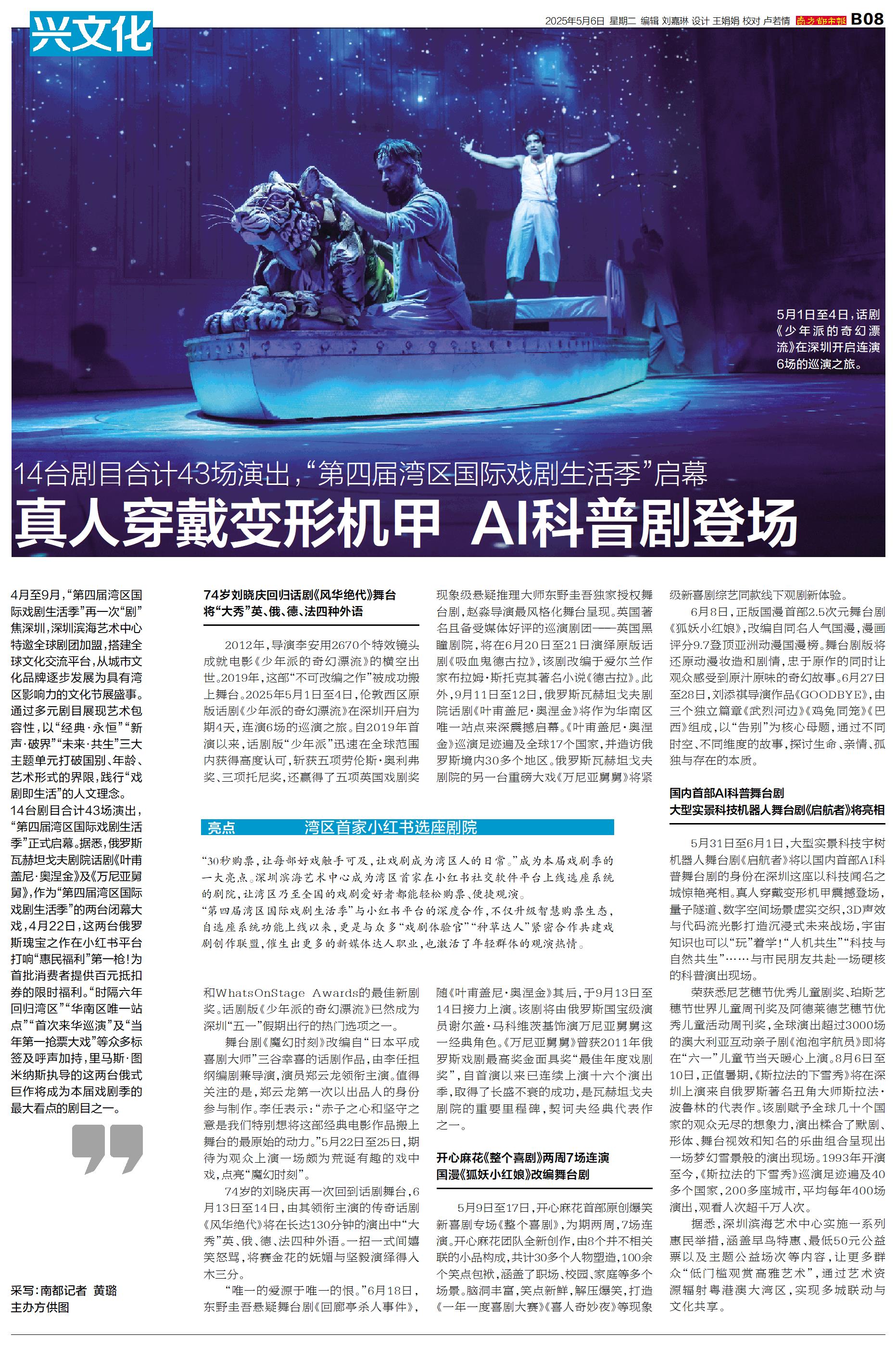 4月至9月,“第四届湾区国际戏剧生活季”再一次“剧”焦深圳,深圳滨海艺术中心特邀全球剧团加盟,搭建全球文化交流平台,从城市文化品牌逐步发展为具有湾区影响力的文化节展盛事。通过多元剧目展现艺术包容性