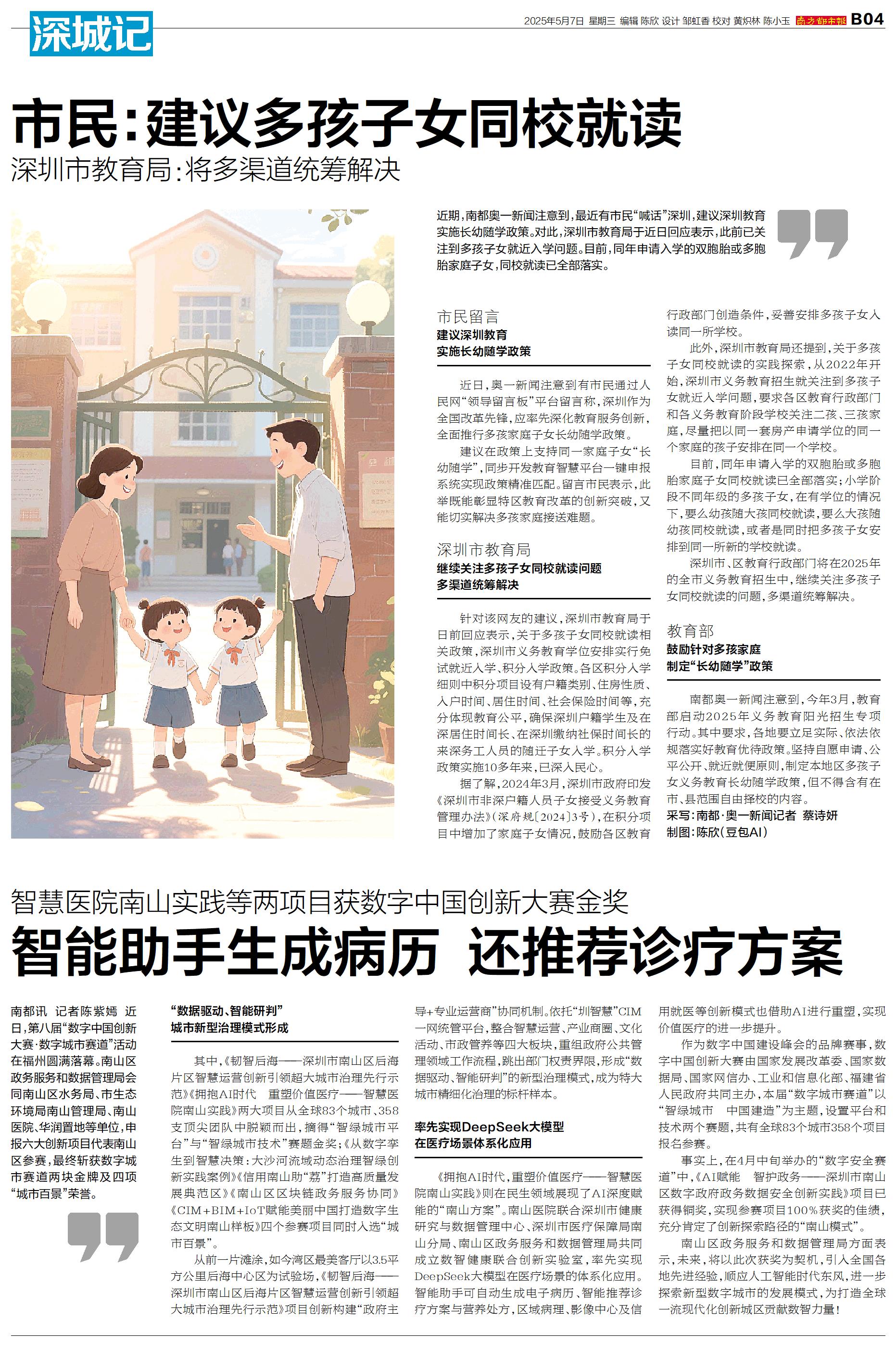 近期,南都奥一新闻注意到,最近有市民“喊话”深圳,建议深圳教育实施长幼随学政策。对此,深圳市教育局于近日回应表示,此前已关注到多孩子女就近入学问题。目前,同年申请入学的双胞胎或多胞胎家庭子女,同校