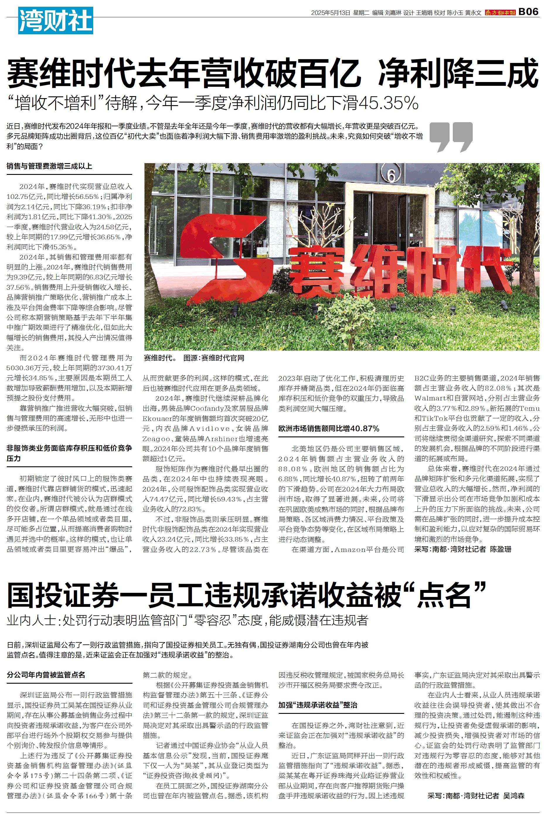 近日,赛维时代发布2024年年报和一季度业绩。不管是去年全年还是今年一季度,赛维时代的营收都有大幅增长,年营收更是突破百亿元。 多元品牌矩阵成功出圈背后,这位百亿“初代大卖”也面临着净利润大幅下