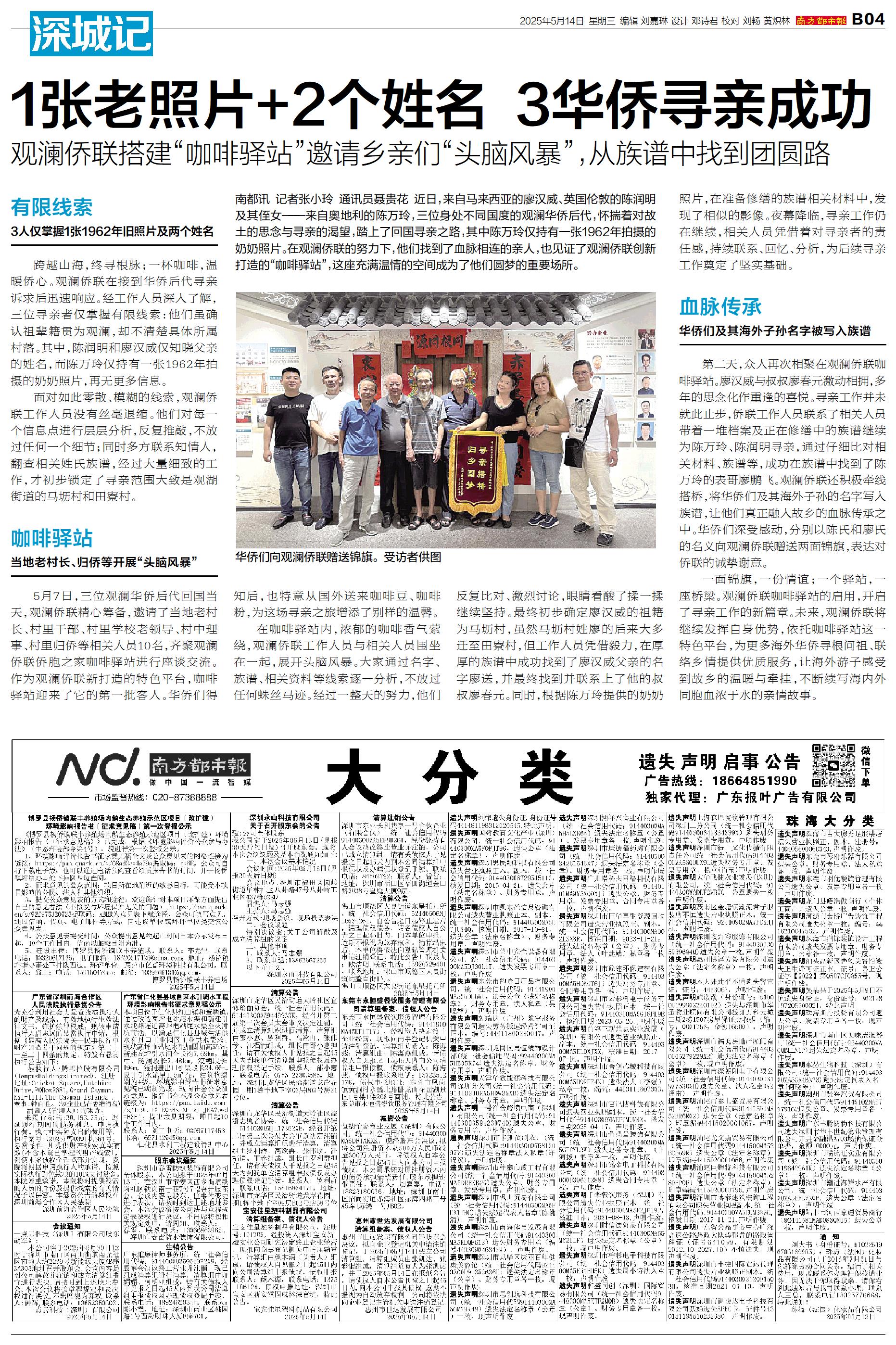 南都讯 记者张小玲 通讯员聂贵花 近日,来自马来西亚的廖汉威、英国伦敦的陈润明及其侄女——来自奥地利的陈万玲,三位身处不同国度的观澜华侨后代,怀揣着对故土的思念与寻亲的渴望,踏上了回国寻亲之路,其