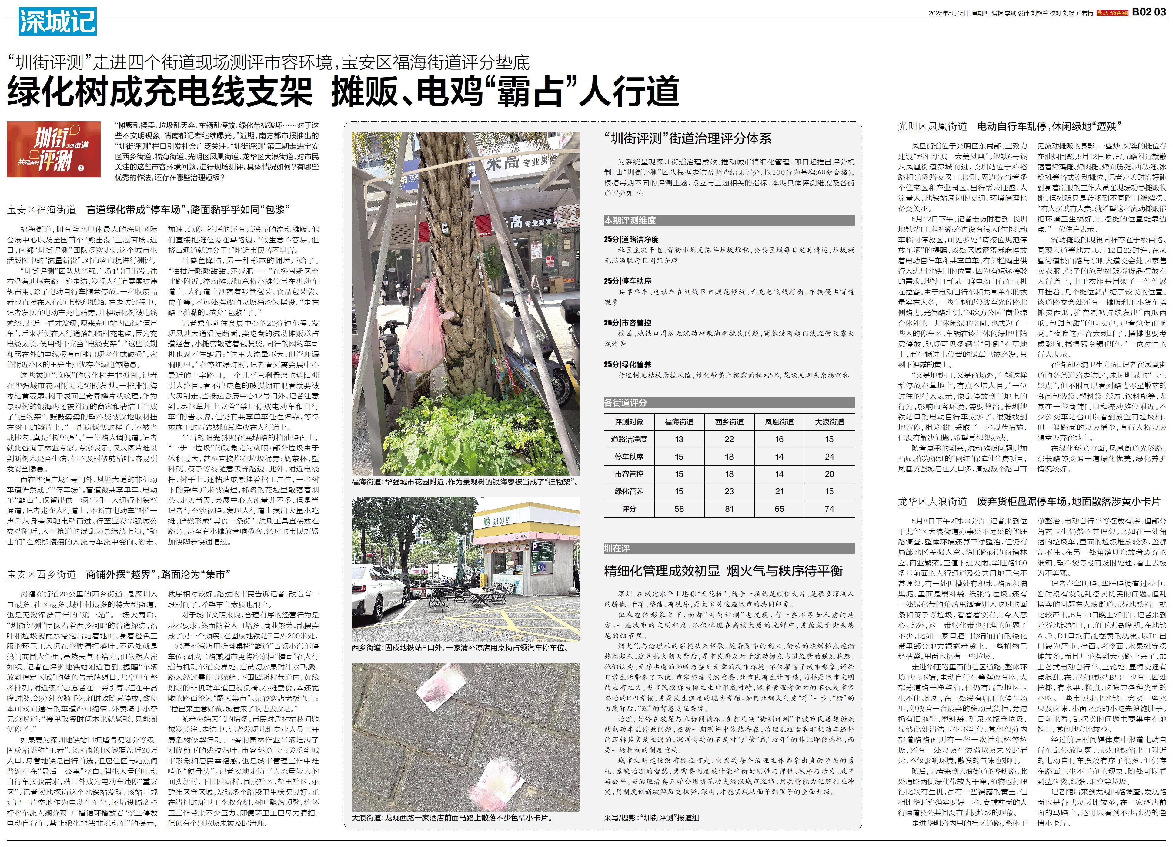 “摊贩乱摆卖、垃圾乱丢弃、车辆乱停放、绿化带被破坏……对于这些不文明现象,请南都记者继续曝光。”近期,南方都市报推出的“圳街评测”栏目引发社会广泛关注。“圳街评测”第三期走进宝安区西乡街道、福海街道、光明区凤凰街道、龙华区大浪街道,对市民关注的这些市容环境问题,进行现场测评。具体情况如何?有哪些优秀的作法,还存在哪些治理短板?