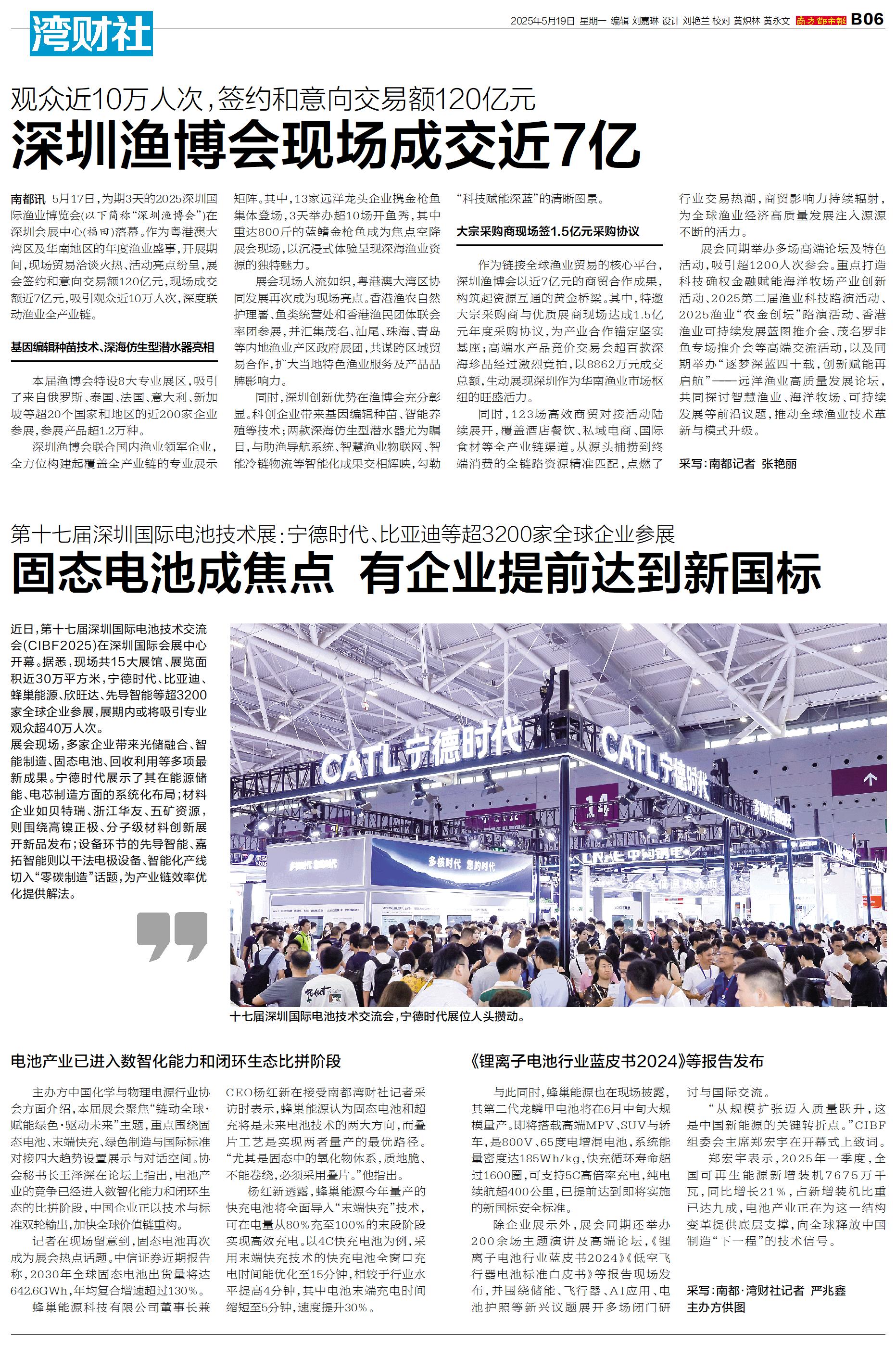 南都讯 5月17日,为期3天的2025深圳国际渔业博览会(以下简称“深圳渔博会”)在深圳会展中心(福田)落幕。作为粤港澳大湾区及华南地区的年度渔业盛事,开展期间,现场贸易洽谈火热、活动亮点纷呈,展