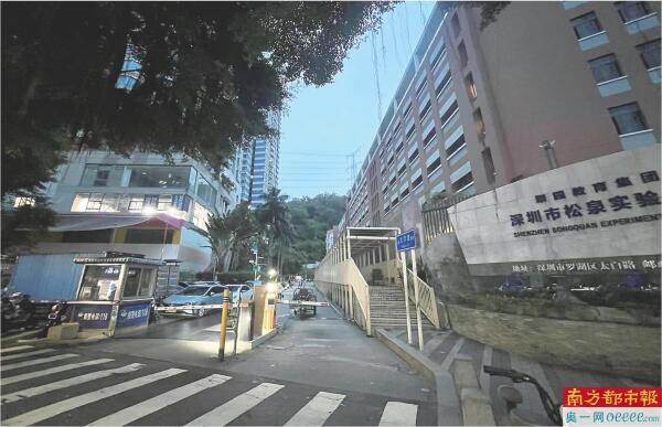 罗湖松涛路,左边为雍翠华府,右边为深圳市松泉实验学校。