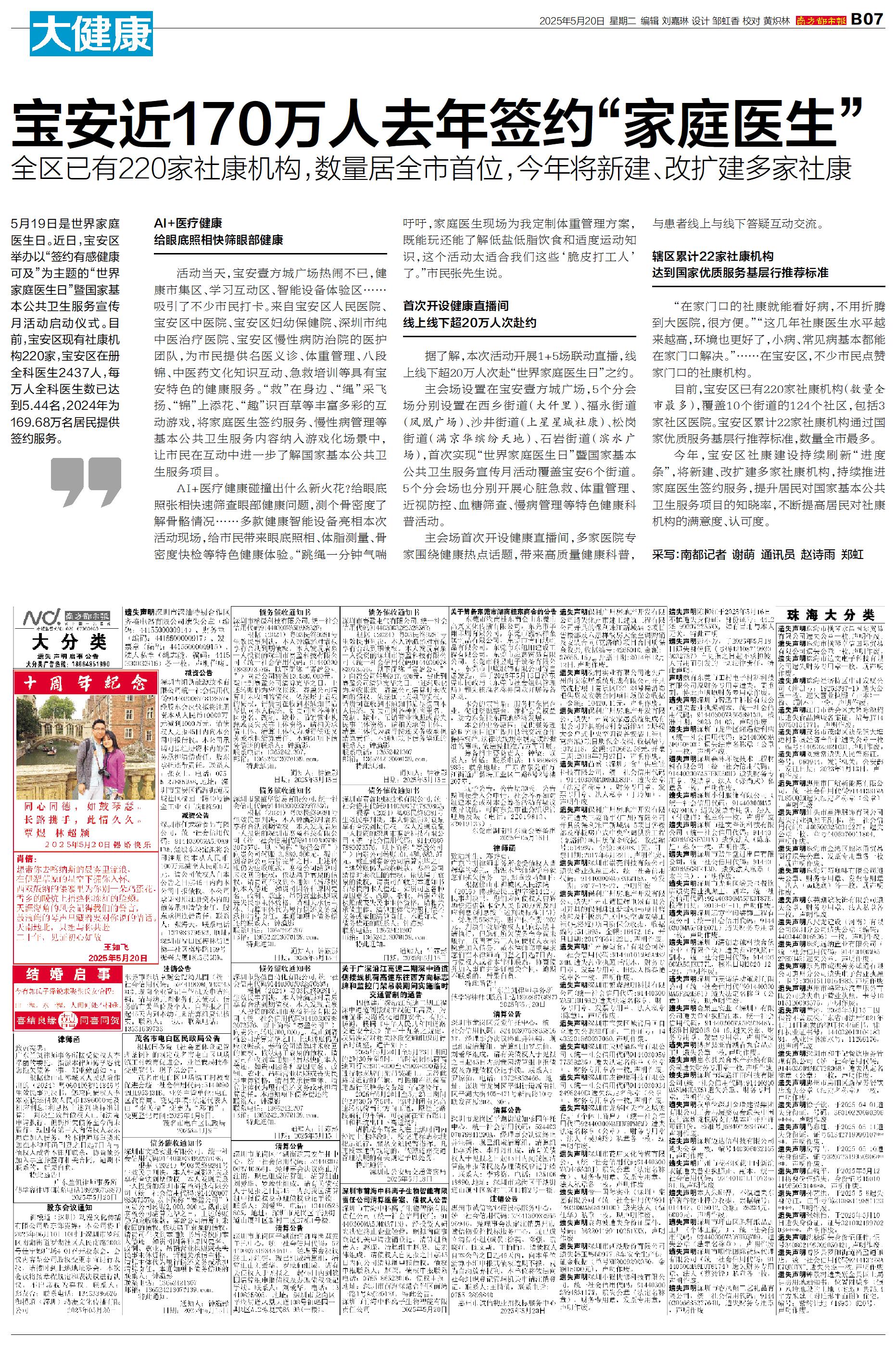 宝安近170万人去年签约“家庭医生”