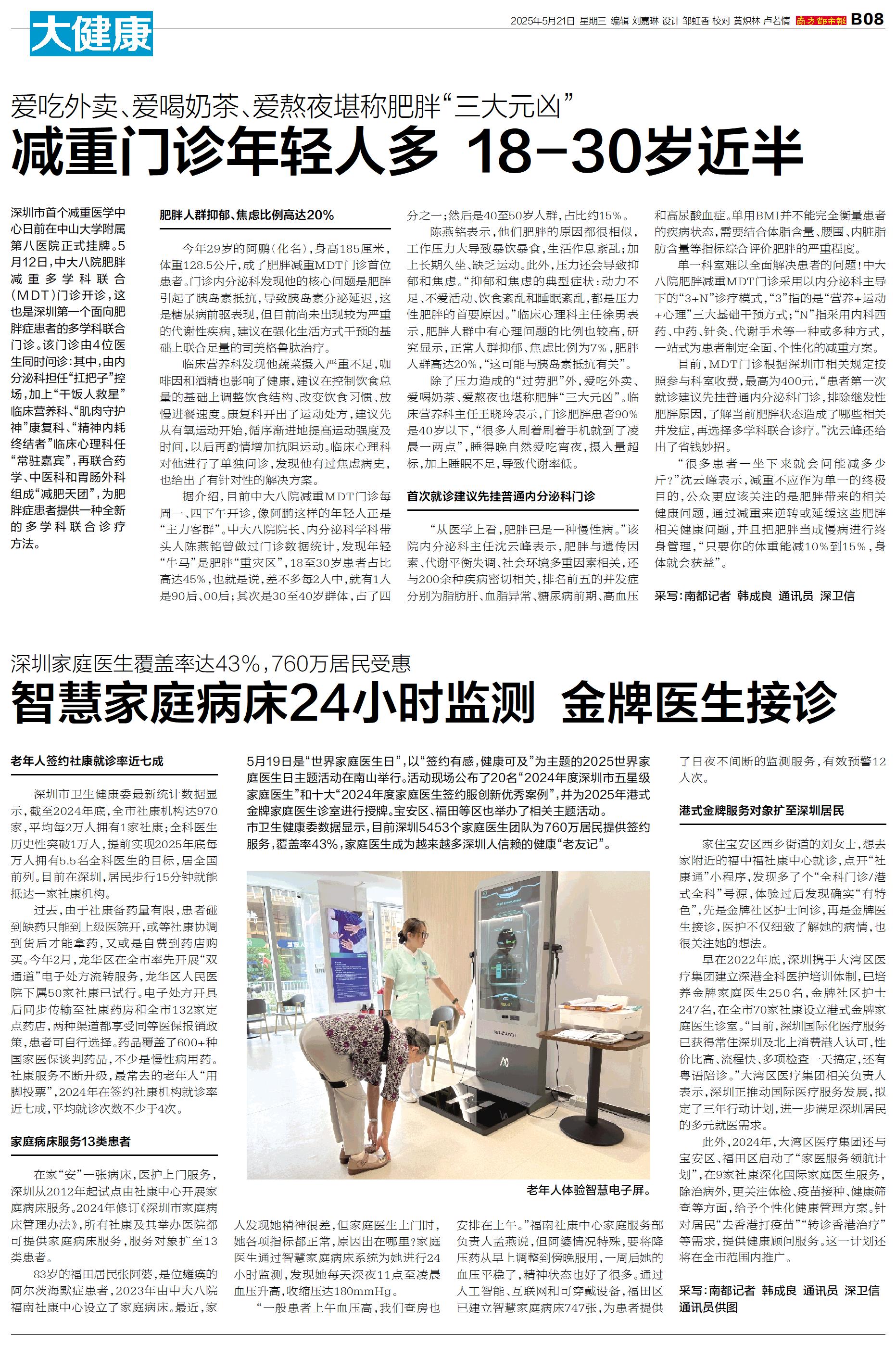 深圳市首个减重医学中心日前在中山大学附属第八医院正式挂牌。5月12日,中大八院肥胖减重多学科联合(MDT)门诊开诊,这也是深圳第一个面向肥胖症患者的多学科联合门诊。该门诊由4位医生同时问诊:其中,