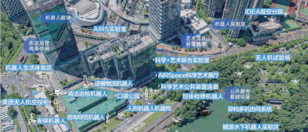 包括机器人剧场在内,一个具身智能机器人示范街区将依托剧场所在的坂田星河WORLD片区试点打造。据悉,机器人街区是全国首个集机器人剧场、实验场、园区于一体的具身智能机器人示范街区,街区以机器人剧场为核心,聚焦布局未来科技大实验室、具身智能机器人数据采集场、场景应用试验田、具身智能产业聚集区。这个园区,不仅仅拥有剧场、机器人“4S”店、零部件零售超市,还将配套智能机器人停机坪(站点)、充换电“补给站”、日常运维“服务点”等。更重要的是,在这个街区,饭菜可能是机器人做的,配送的是无人机,导购员也会是机器人。“我们目标打造全国首个具身智能科普教育、文娱旅游示范街区和机器人主题沉浸式街区。”龙岗区相关负责人表示。