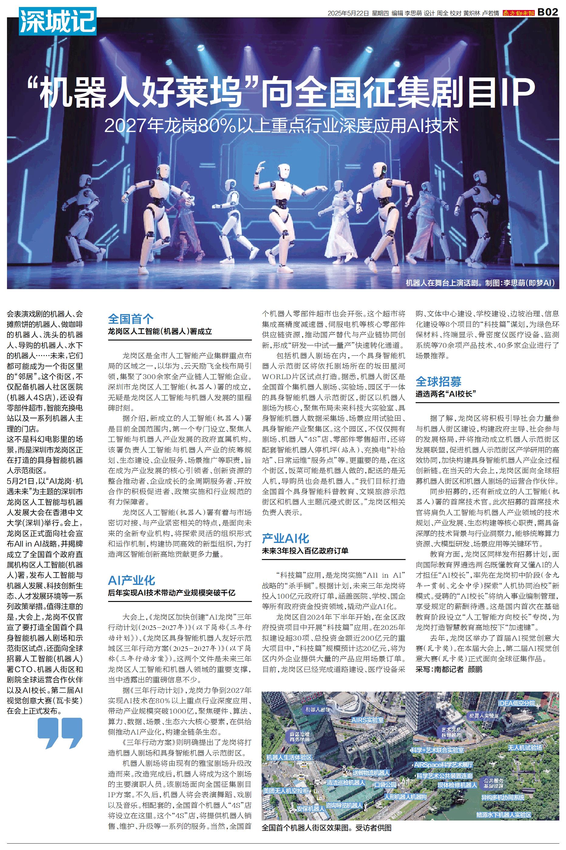机器人在舞台上演话剧。 制图:李思萌(即梦AI) 全国首个机器人街区效果图。 受访者供图 会表演戏剧的机器人、会摊煎饼的机器人、做咖啡的机器人、洗