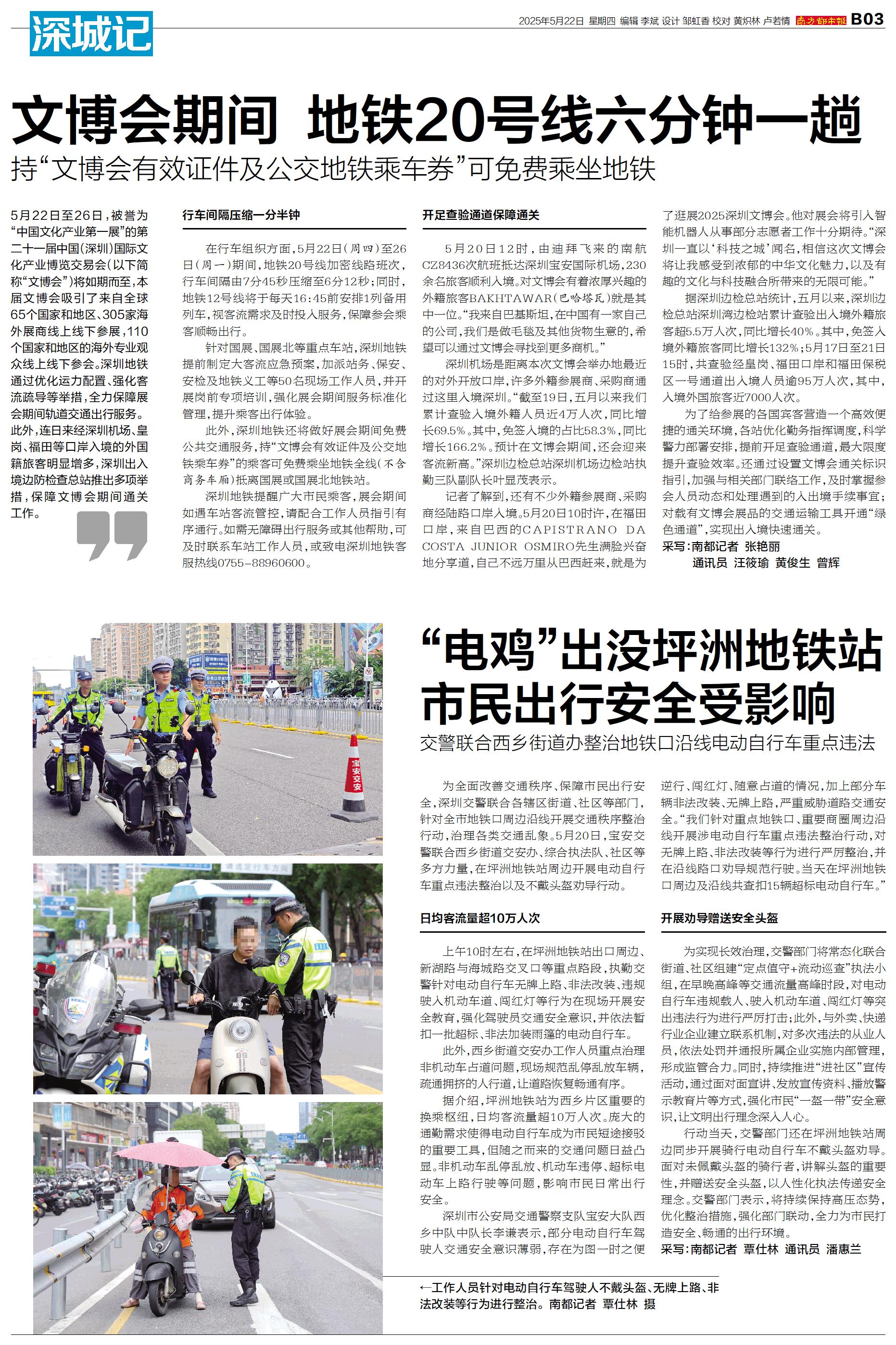 为全面改善交通秩序、保障市民出行安全,深圳交警联合各辖区街道、社区等部门,针对全市地铁口周边沿线开展交通秩序整治行动,治理各类交通乱象。5月20日,宝安交警联合西乡街道交安办、综合执法队、社区等多