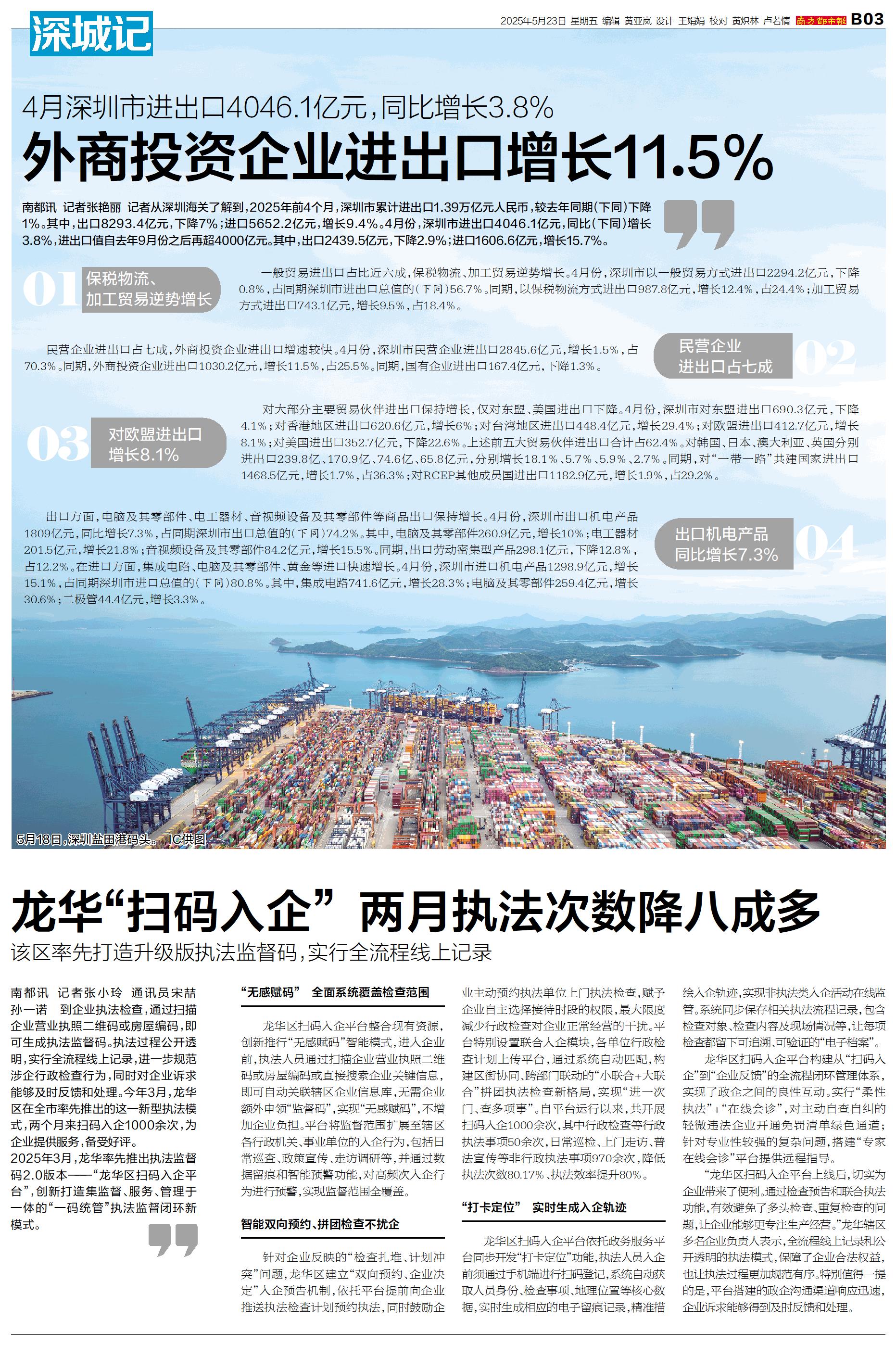 龙华“扫码入企” 两月执法次数降八成多