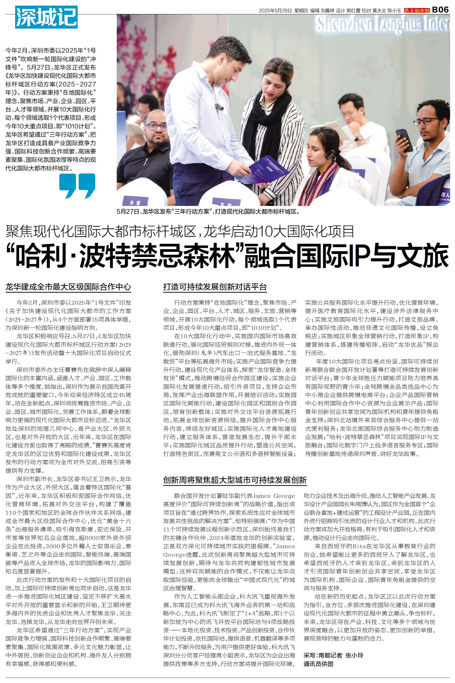 今年2月,深圳市委以2025年“1号文件”吹响新一轮国际化建设的“冲锋号”。5月27日,龙华区正式发布《龙华区加快建设现代化国际大都市标杆城区行动方案(2025-2027年)》。行动方案秉持“在地