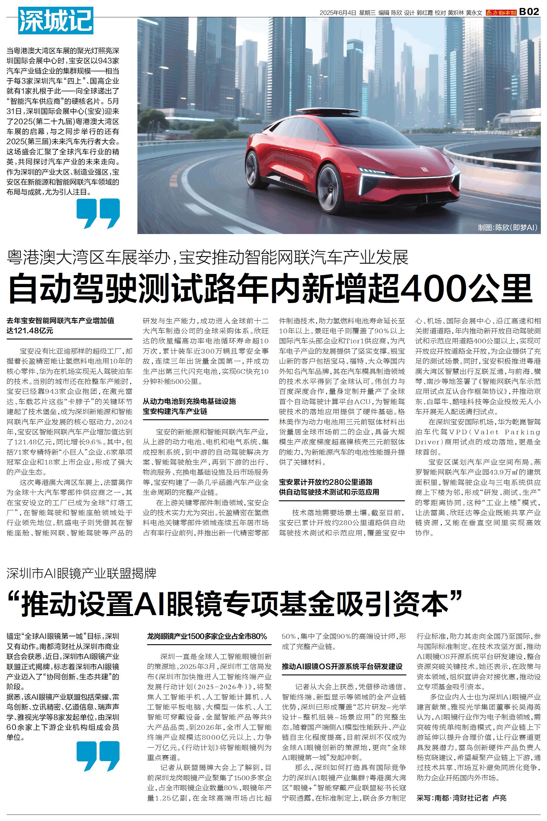 当粤港澳大湾区车展的聚光灯照亮深圳国际会展中心时,宝安区以943家汽车产业链企业的集群规模——相当于每3家深圳汽车“四上”、国高企业就有1家扎根于此——向全球递出了“智能汽车供应商”的硬核名片。5