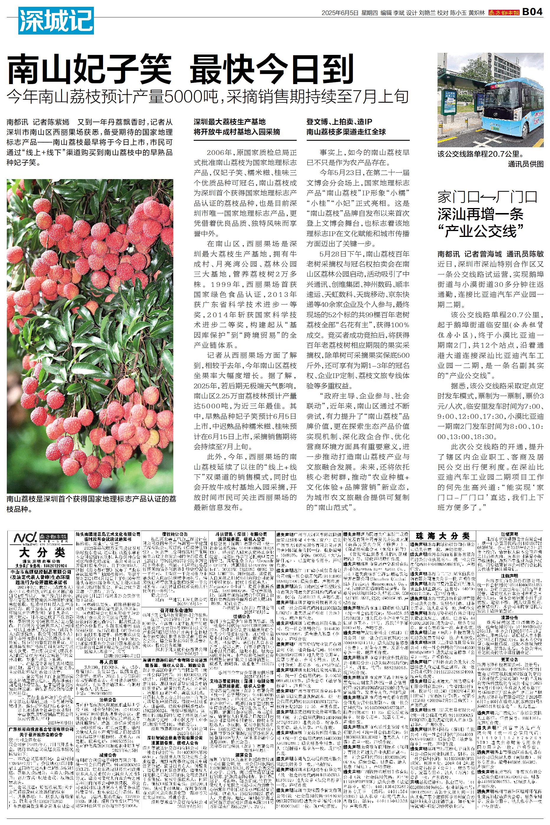 南都讯 记者陈紫嫣 又到一年丹荔飘香时,记者从深圳市南山区西丽果场获悉,备受期待的国家地理标志产品——南山荔枝最早将于今日上市,市民可通过“线上+线下”渠道购买到南山荔枝中的早熟品种妃子笑。 深