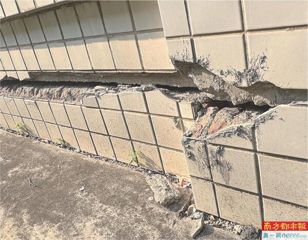 南山区龙都花园一楼栋外侧有裂缝。 南都·奥一新闻记者 乔锐 摄