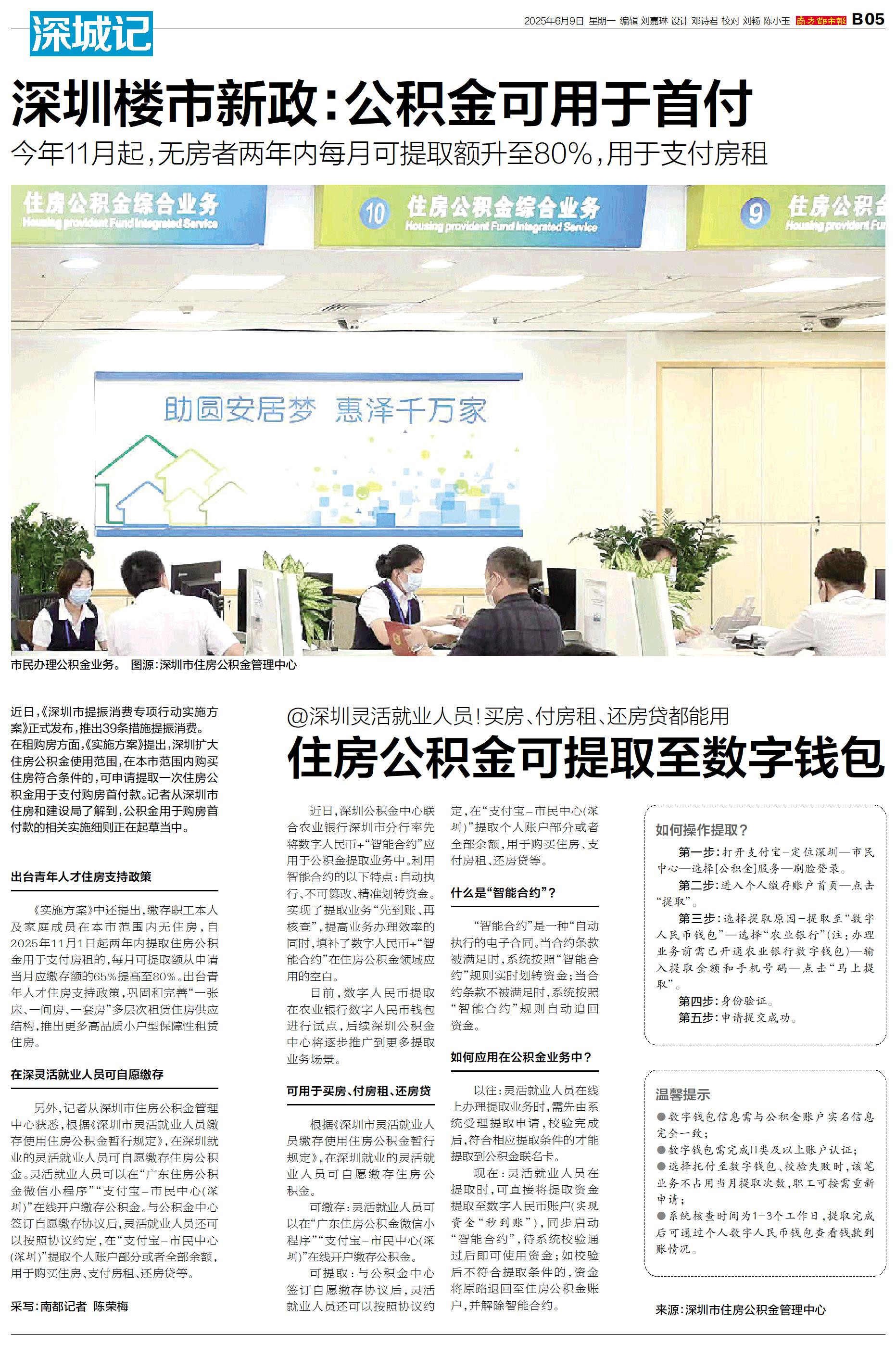 近日,《深圳市提振消费专项行动实施方案》正式发布,推出39条措施提振消费。 在租购房方面,《实施方案》提出,深圳扩大住房公积金使用范围,在本市范围内购买住房符合条件的,可申请提取一次住房公积金用