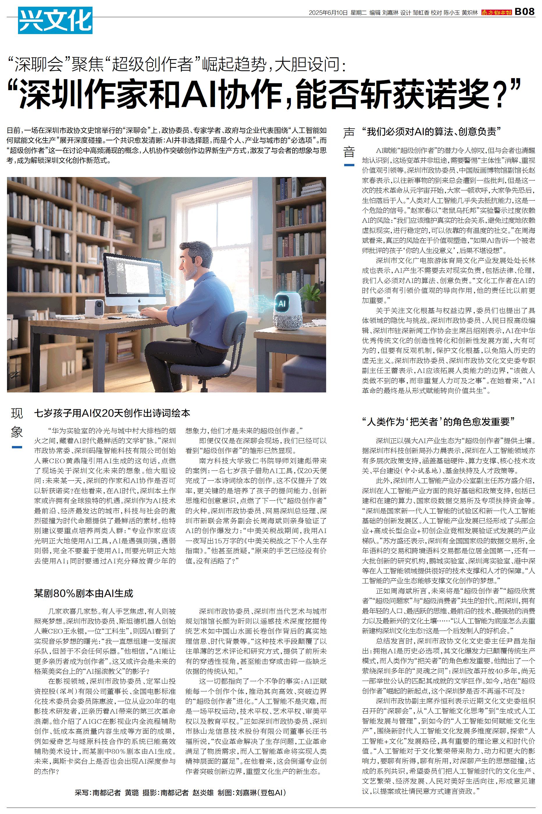 日前,一场在深圳市政协文史馆举行的“深聊会”上,政协委员、专家学者、政府与企业代表围绕“人工智能如何赋能文化生产”展开深度碰撞。一个共识愈发清晰:AI并非选择题,而是个人、产业与城市的“必选项”。