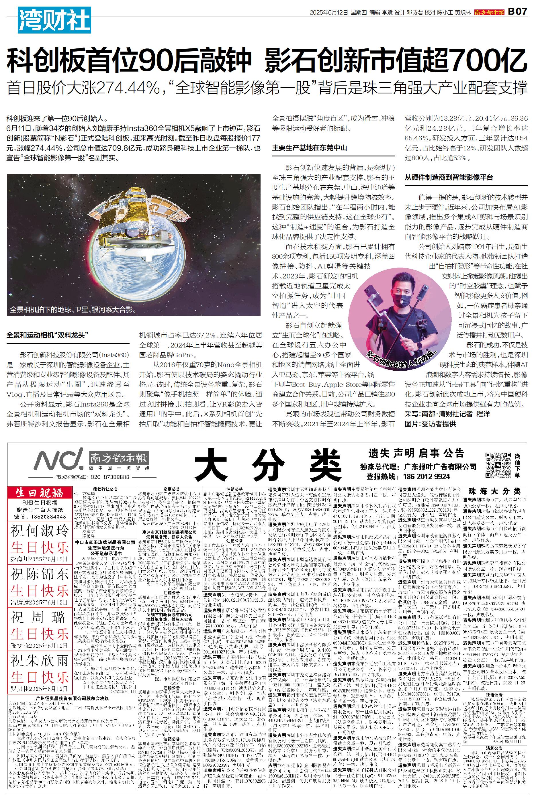 科创板迎来了第一位90后创始人。 6月11日,随着34岁的创始人刘靖康手持Insta360全景相机X5敲响了上市钟声,影石创新(股票简称“N影石”)正式登陆科创板,迎来高光时刻。截至昨日收盘每股