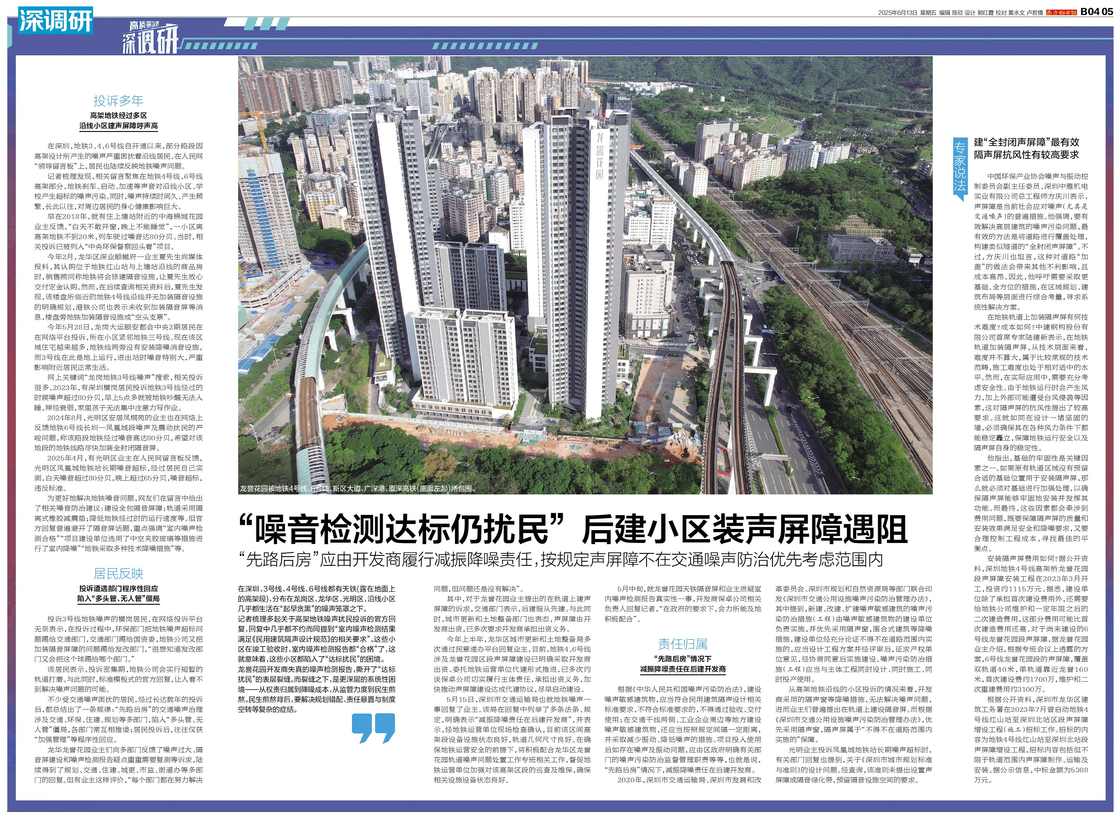 在深圳,3号线、4号线、6号线都有天铁(露在地面上的高架段),分布在龙岗区、龙华区、光明区,沿线小区几乎都生活在“起早贪黑”的噪声笼罩之下。 记者梳理多起关于高架地铁噪声扰民投诉的官方回复,回复