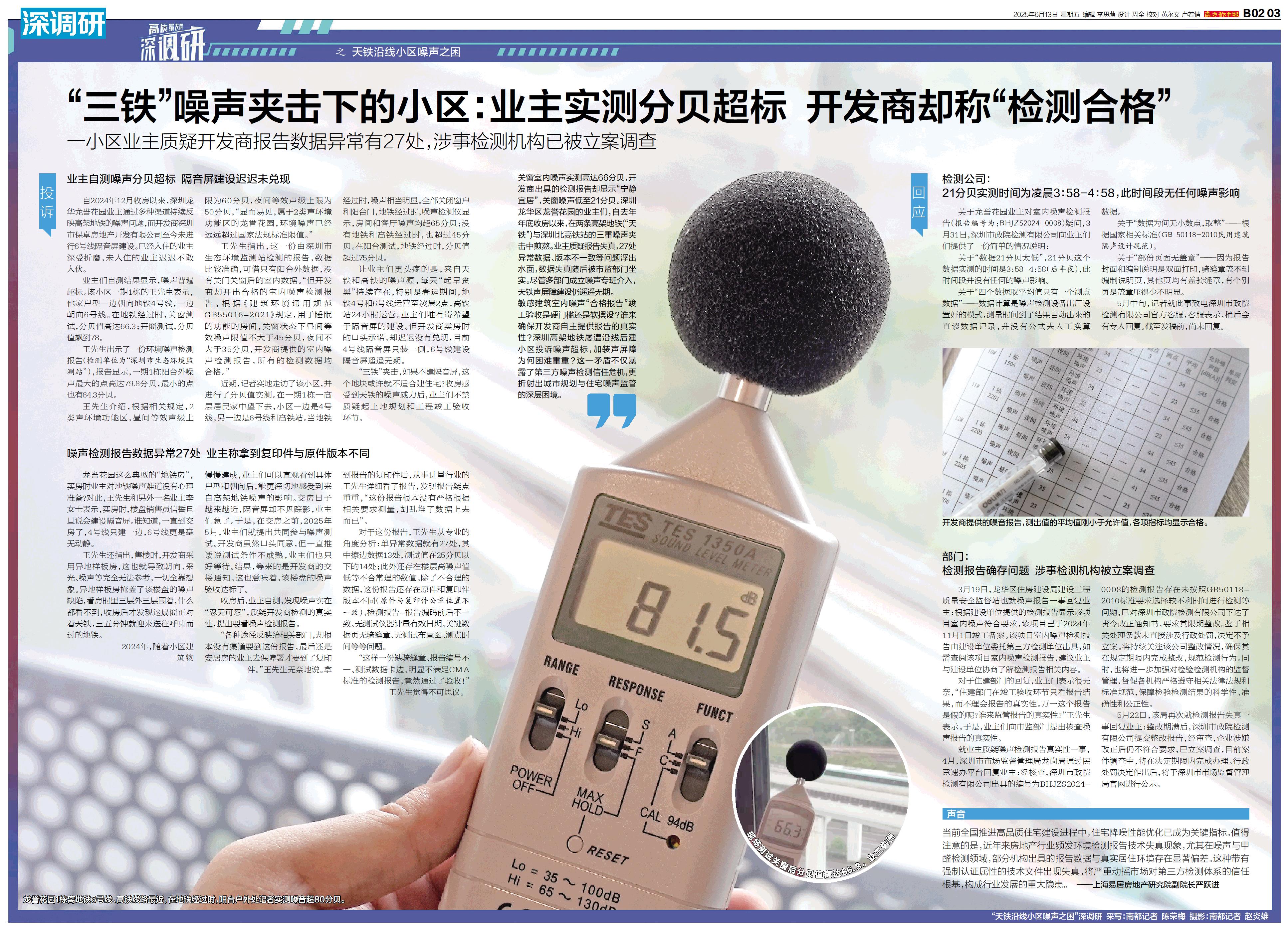 高质量发展深调研之天铁沿线小区噪声之困 关窗室内噪声实测高达66分贝,开发商出具的检测报告却显示“宁静宜居”,关窗噪声低至21分贝。深圳龙华区龙誉花园的业主们,自去年年底收房以来,在两条高架地铁