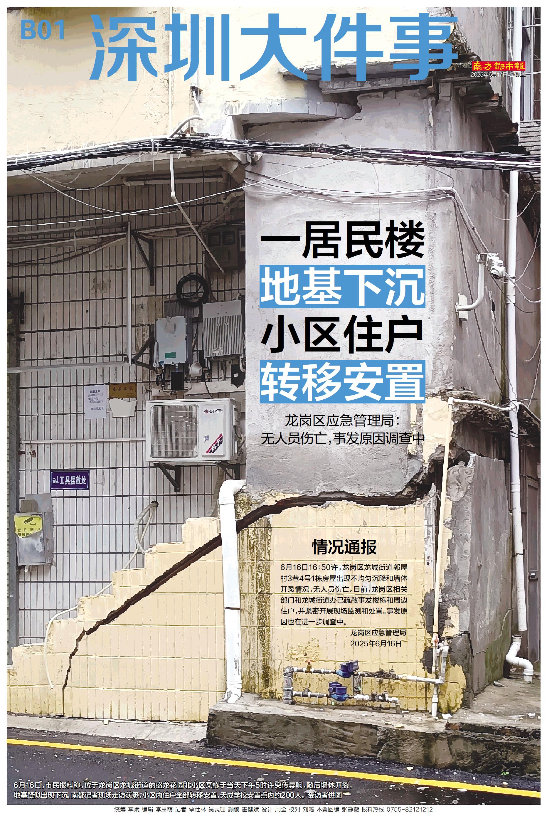 情况通报 6月16日16:50许,龙岗区龙城街道郭屋村3巷4号1栋房屋出现不均匀沉降和墙体开裂情况,无人员伤亡。目前,龙岗区相关部门和龙城街道办已疏散事发楼栋和周边住户,并紧密开展现场监测和处置