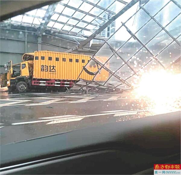南坪快速路高架隔音屏障疑遭货车撞塌