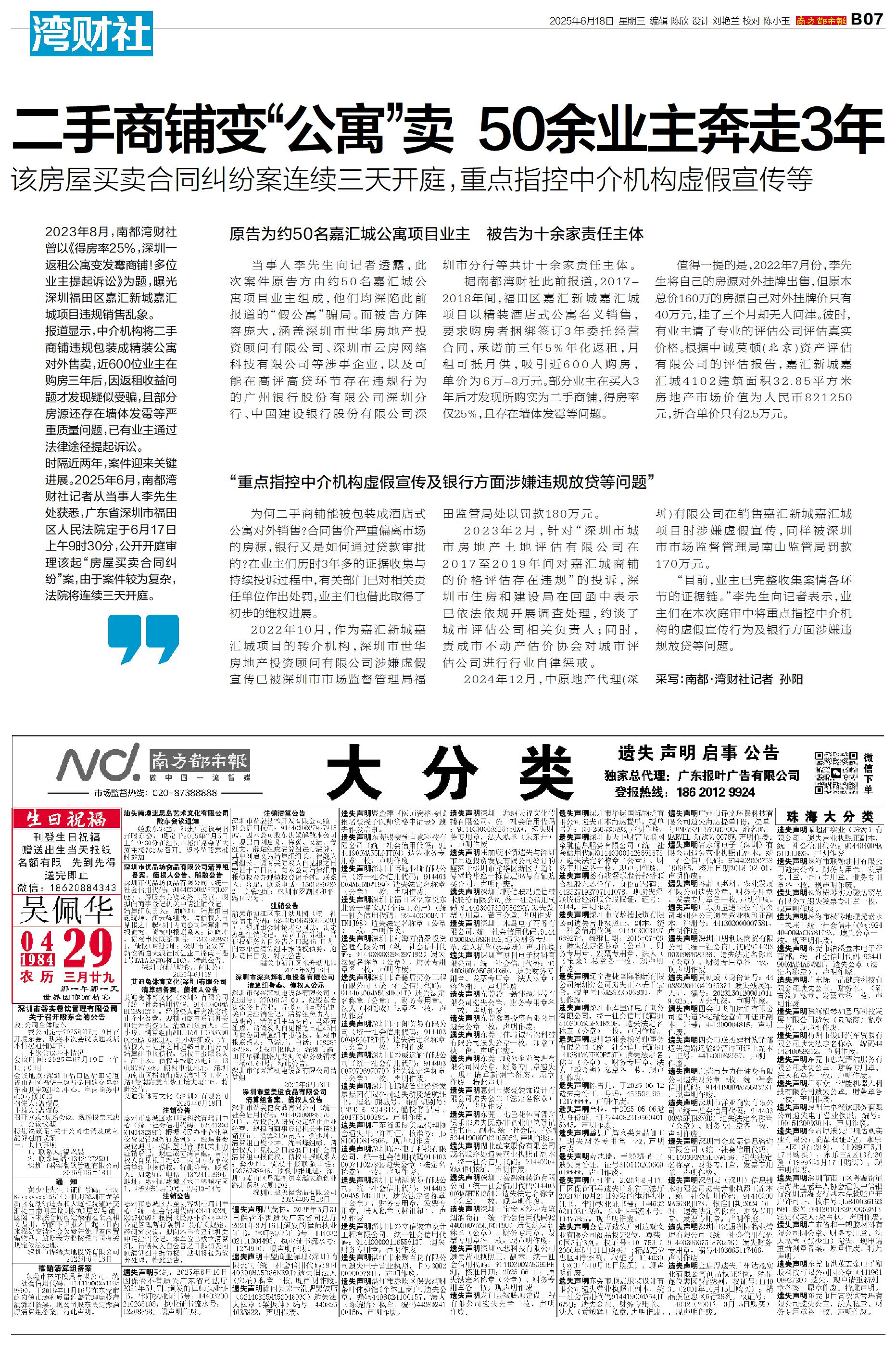 2023年8月,南都湾财社曾以《得房率25%,深圳一返租公寓变发霉商铺!多位业主提起诉讼》为题,曝光深圳福田区嘉汇新城嘉汇城项目违规销售乱象。 报道显示,中介机构将二手商铺违规包装成精装公寓对外
