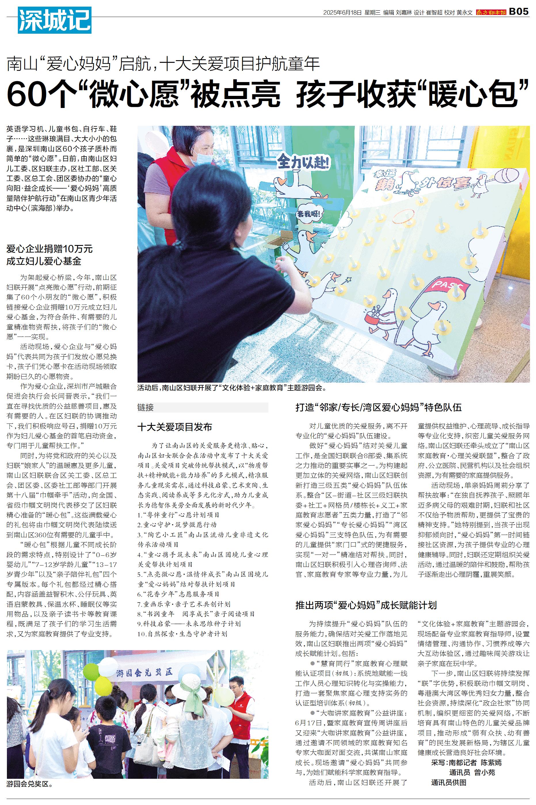 英语学习机、儿童书包、自行车、鞋子……这些琳琅满目、大大小小的包裹,是深圳南山区60个孩子质朴而简单的“微心愿”。日前,由南山区妇儿工委、区妇联主办,区社工部、区关工委、区总工会、团区委协办的“童