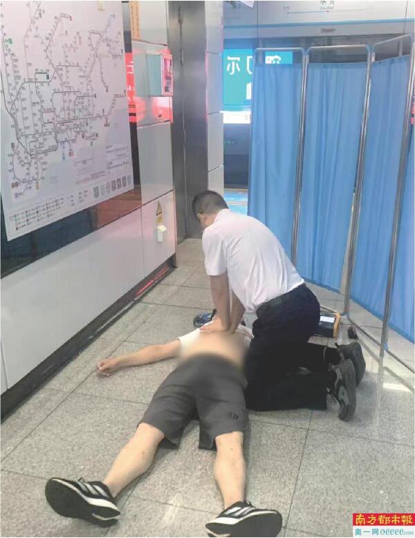南都讯 6月14日晚,深圳地铁员工在列车上发现一名乘客晕倒,随即展开了一场紧张高效的生命接力:迅速报告、安全转移、心肺复苏、AED除颤……一系列应急操作环环相扣,从乘客晕倒到急救复苏,仅用8分钟,成功让一名突发疾病失去意识的55岁乘客转危为安。