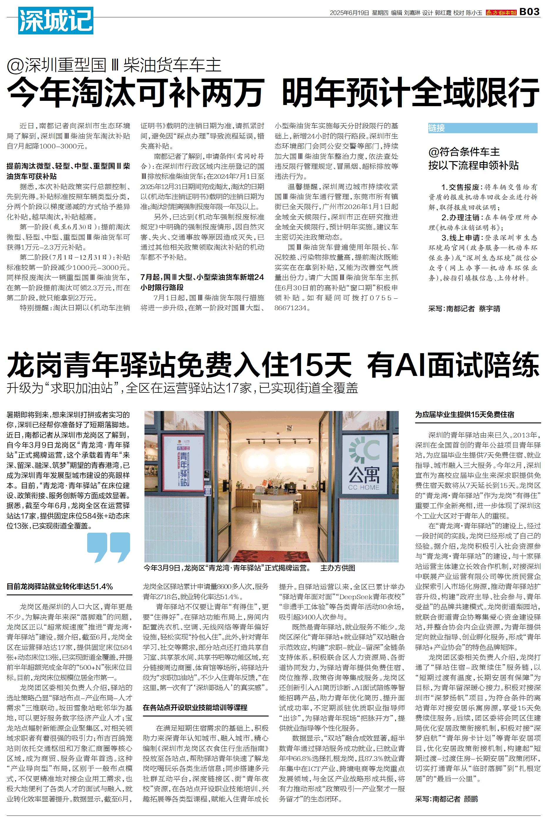 暑期即将到来,想来深圳打拼或者实习的你,深圳已经帮你准备好了短期落脚地。近日,南都记者从深圳市龙岗区了解到,自今年3月9日龙岗区“青龙湾·青年驿站”正式揭牌运营,这个承载着青年“来深、留深、融深、