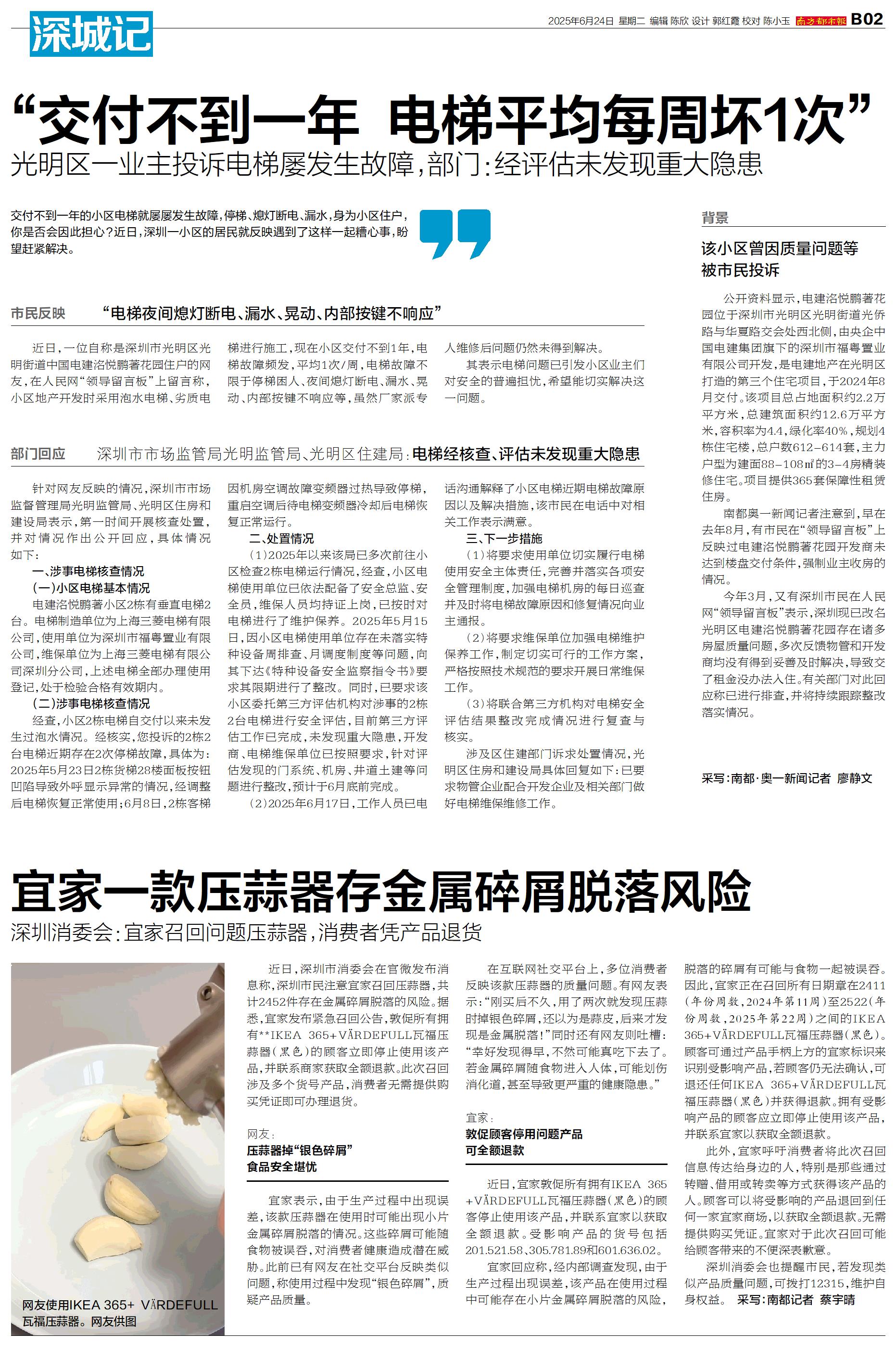 交付不到一年的小区电梯就屡屡发生故障,停梯、熄灯断电、漏水,身为小区住户,你是否会因此担心?近日,深圳一小区的居民就反映遇到了这样一起糟心事,盼望赶紧解决。 市民反映 “电梯夜间熄灯断电、漏水