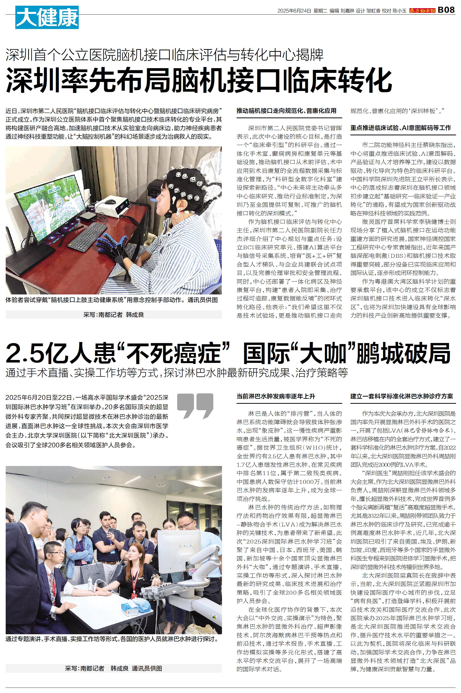 近日,深圳市第二人民医院“脑机接口临床评估与转化中心暨脑机接口临床研究病房”正式成立。作为深圳公立医院体系中首个聚焦脑机接口技术临床转化的专业平台,其将构建医研产融合高地,加速脑机接口技术从实验室
