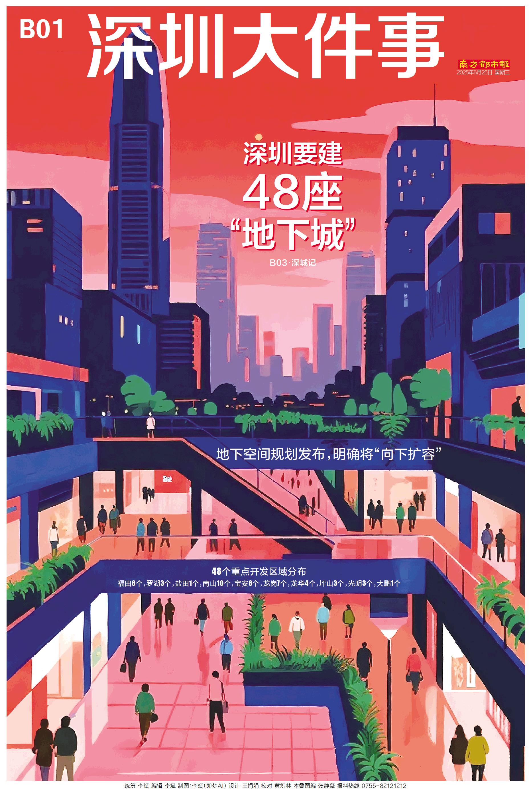 地下空间规划发布,明确将“向下扩容” 48个重点开发区域分布 福田8个,罗湖3个,盐田1个,南山10个,宝安8个,龙岗7个,龙华4个,坪山3个,光明3个,大鹏1个 B03·深城记