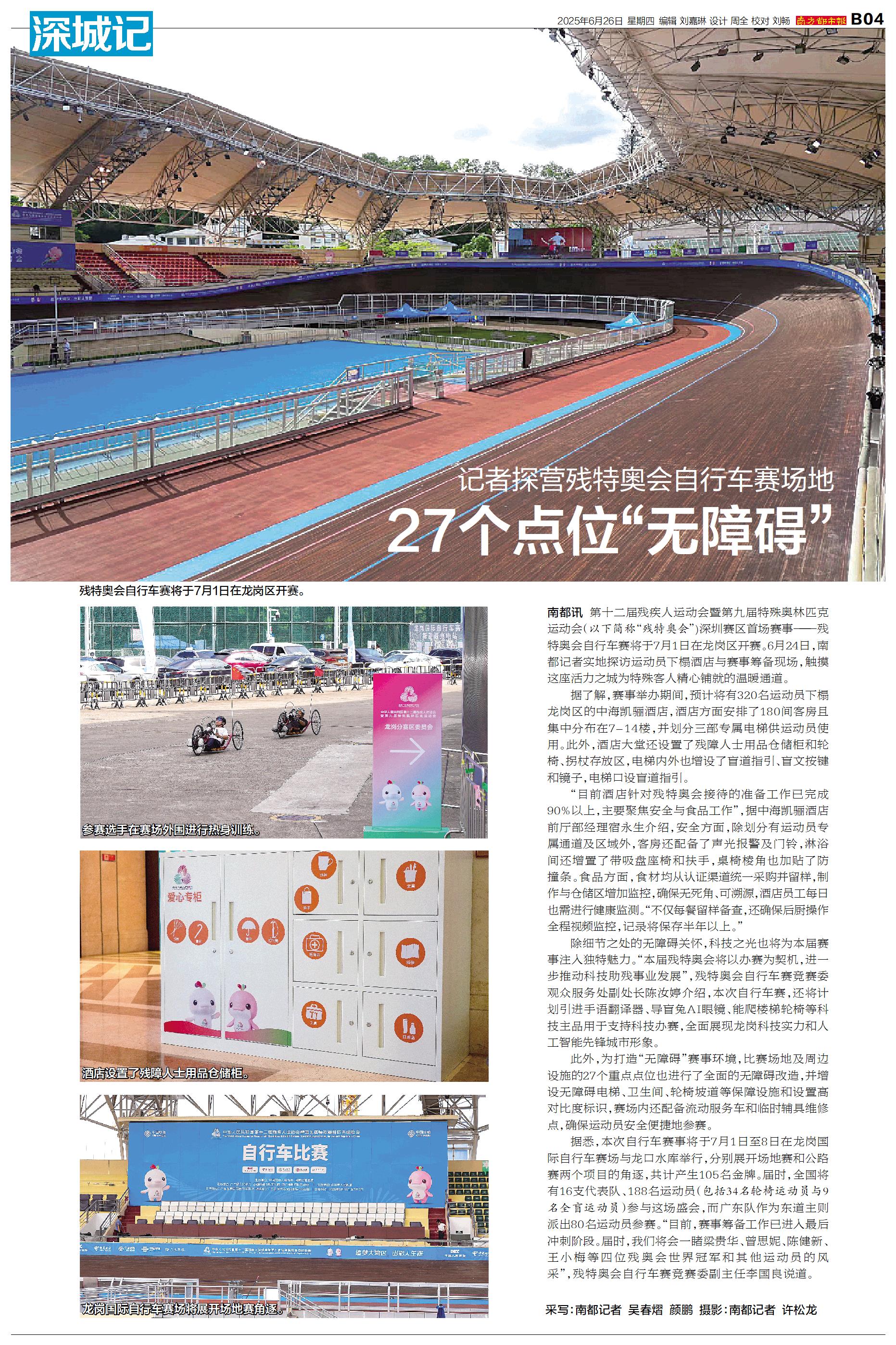 南都讯 第十二届残疾人运动会暨第九届特殊奥林匹克运动会(以下简称“残特奥会”)深圳赛区首场赛事——残特奥会自行车赛将于7月1日在龙岗区开赛。6月24日,南都记者实地探访运动员下榻酒店与赛事筹备现场