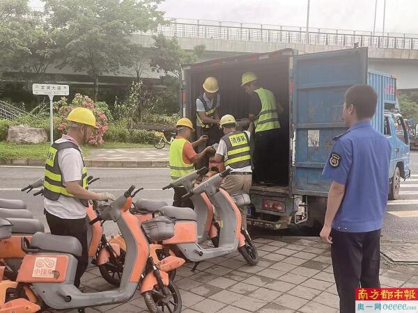 面对新兴交通业态带来的管理难题,福城街道办自2024年5月起启动专项整治,以“源头管控+动态清理+长效监管”为逻辑主线,通过四项硬核举措破解城市治理痛点:一是强化部门联动,积极协调相关单位,深入调研摸排,全力探寻适宜的停放场地,成功破解清理车辆的存放困境,为后续整治工作奠定坚实基础;二是对共享电动自行车投放企业进行集中约谈,明确要求企业开展自查自纠,限期将违规投放的车辆清理退场,从源头上遏制乱象蔓延;三是组建专项工作队伍,每周安排机动组联合清拆工人,针对主次干道、地铁口周边等重点区域开展大规模集中清理行动。同时,针对高频回潮点位,安排专人每日开展动态巡查,确保问题第一时间发现、第一时间处置;四是自6月7日起,启动为期60天的专项清理攻坚行动,进一步充实整治力量,提升整治效率与力度。