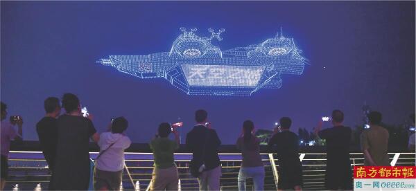 市民、游客在深圳湾观看以“天空之城 大有可能”为主题的无人机表演。 新华社资料图
