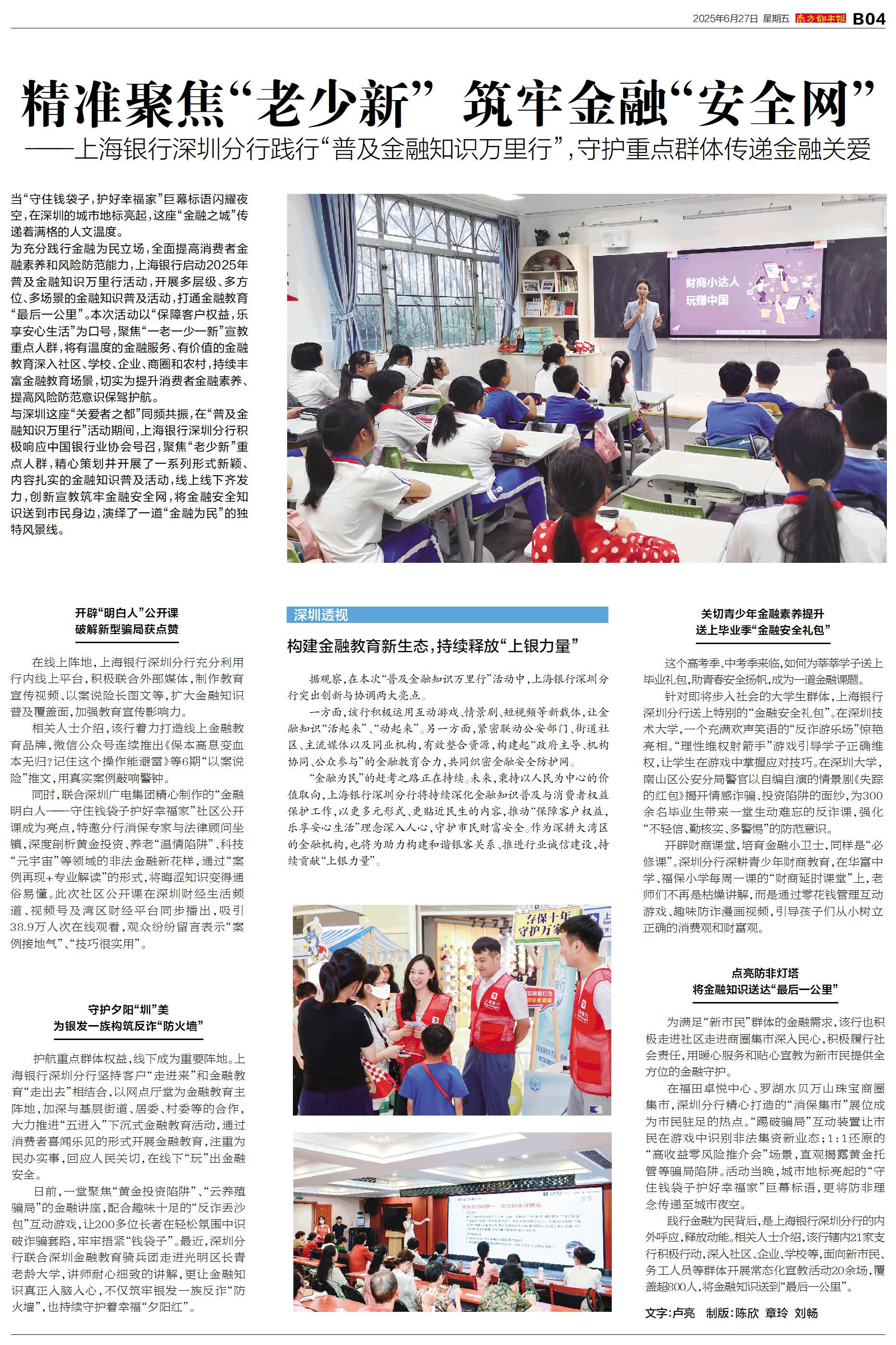 当“守住钱袋子,护好幸福家”巨幕标语闪耀夜空,在深圳的城市地标亮起,这座“金融之城”传递着满格的人文温度。 为充分践行金融为民立场,全面提高消费者金融素养和风险防范能力,上海银行启动2025年普