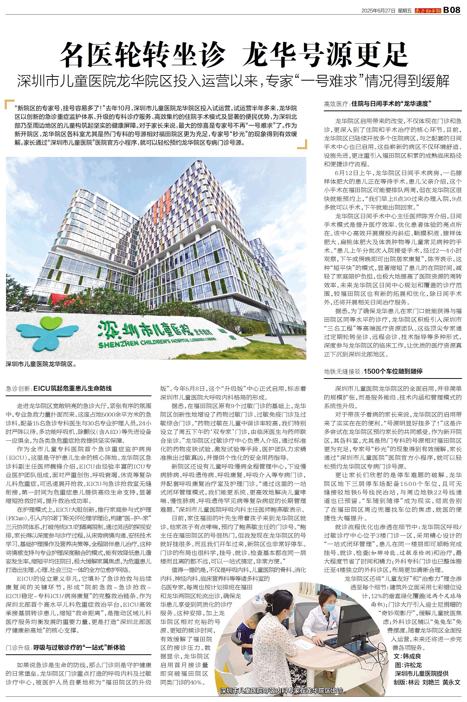 深圳市儿童医院龙华院区。 深圳市儿童医院呼吸内科专家在龙华院区出诊。 “新院区的专家号,挂号容易多了!”去年10月,深圳市儿童医院龙华院区投入试运