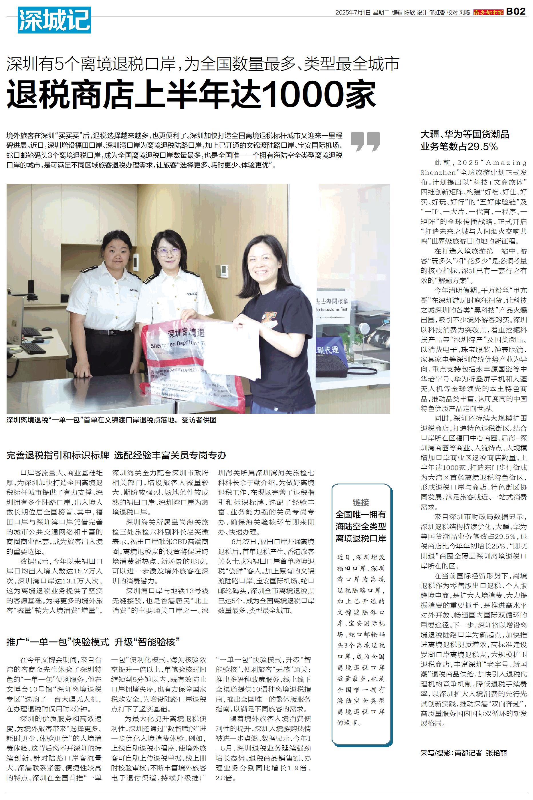 境外旅客在深圳“买买买”后,退税选择越来越多,也更便利了。深圳加快打造全国离境退税标杆城市又迎来一里程碑进展。近日,深圳增设福田口岸、深圳湾口岸为离境退税陆路口岸,加上已开通的文锦渡陆路口岸、宝安