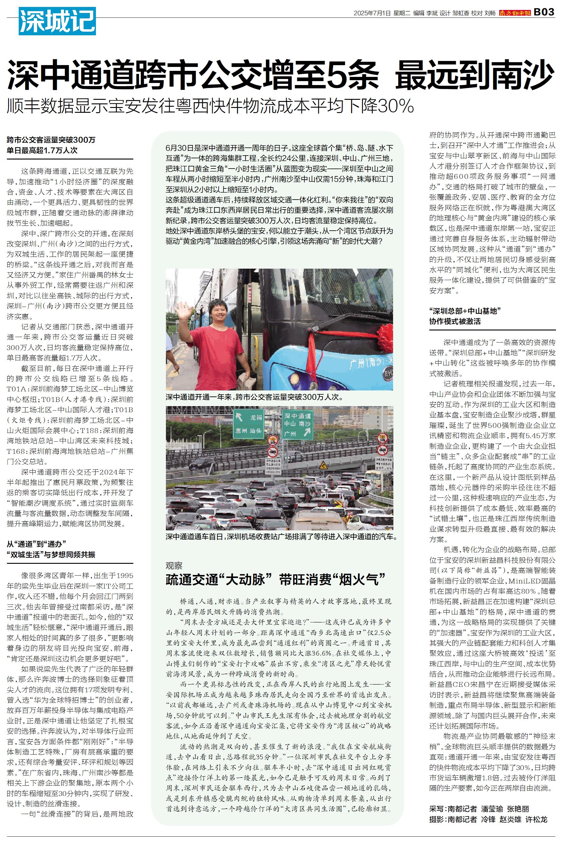 6月30日是深中通道开通一周年的日子。这座全球首个集“桥、岛、隧、水下互通”为一体的跨海集群工程,全长约24公里,连接深圳、中山、广州三地,把珠江口黄金三角“一小时生活圈”从蓝图变为现实——深圳至
